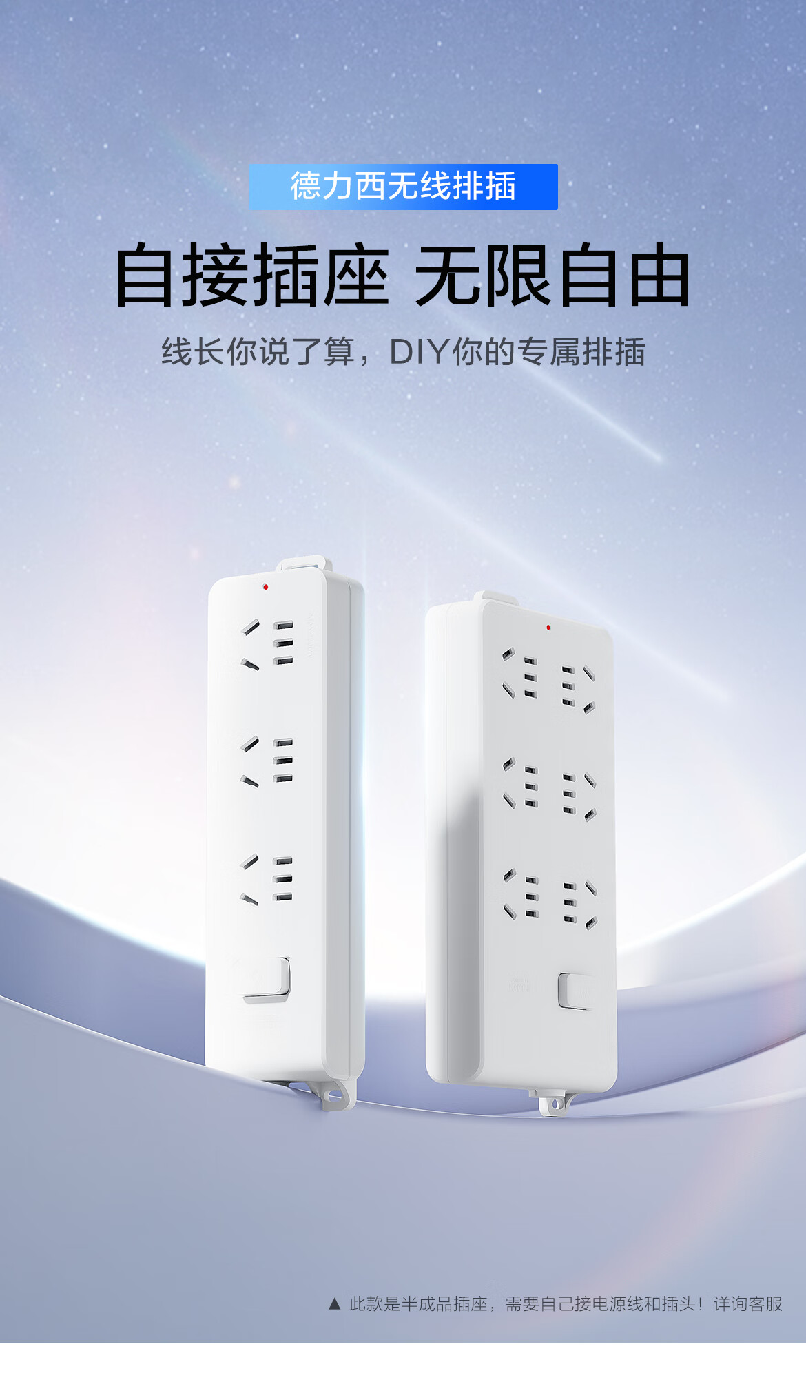 DELIXI national standard socket/socket strip/socket strip/socket strip/socket strip/trailer board 3-position wireless power strip without wire master control switch