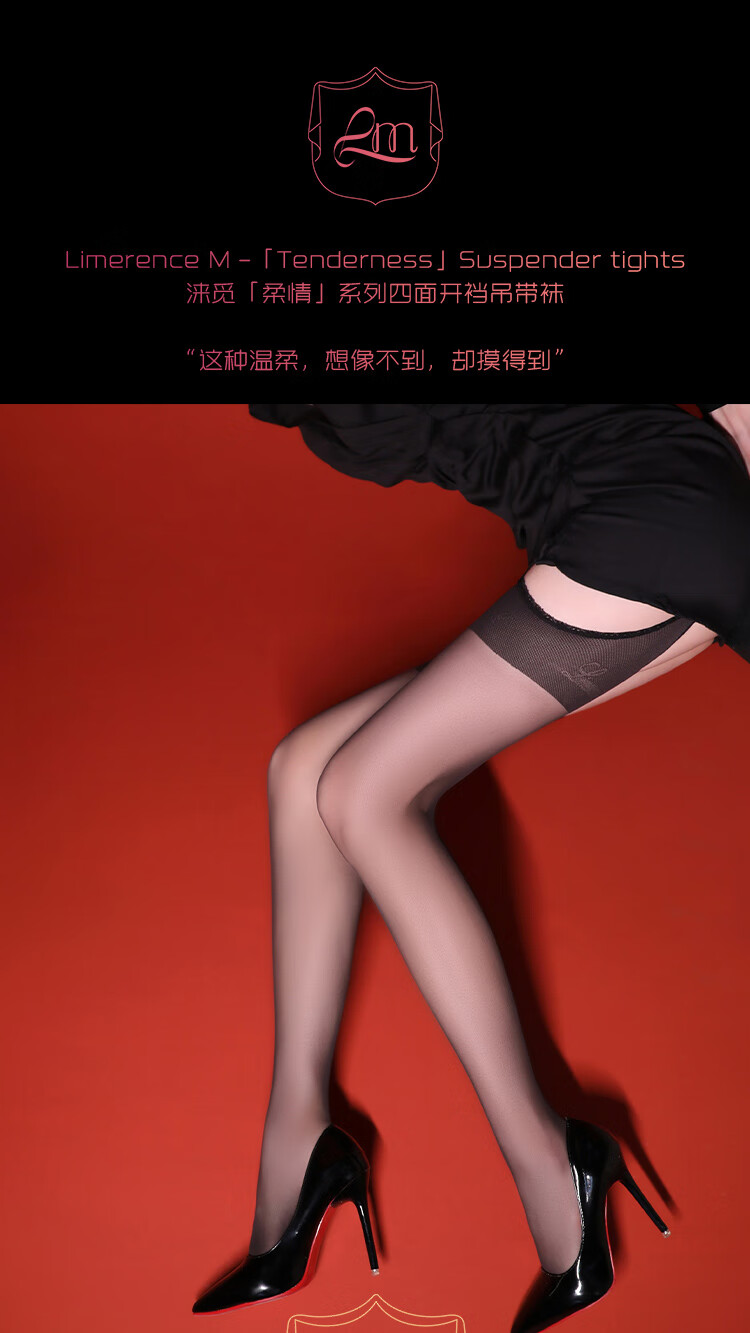 Lai Mi Runsi tenderness four-sided crotch stockings ultra-thin suspenders silky seductive sexy lace pantyhose black