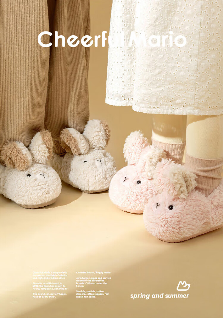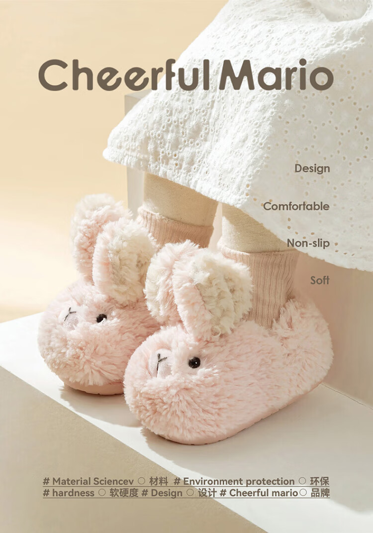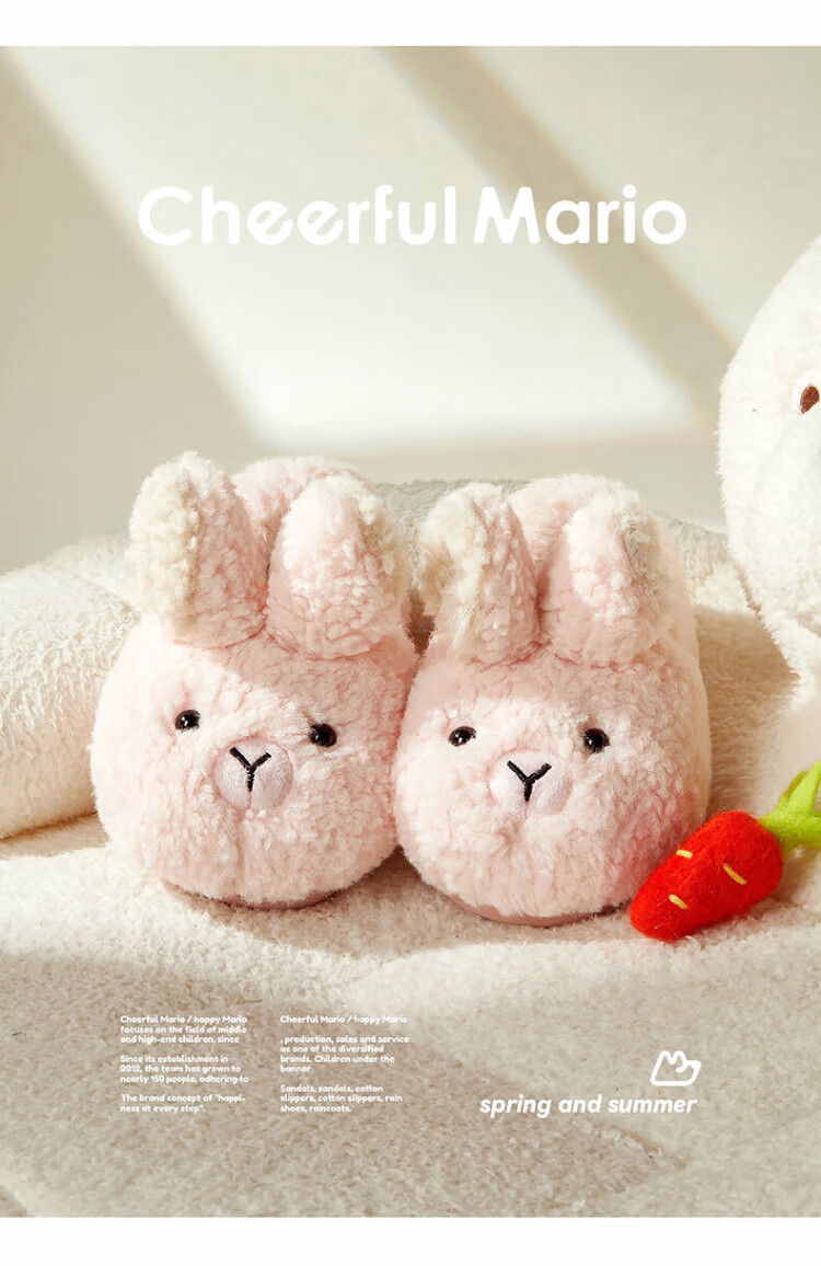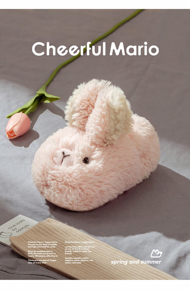 Cheerful Mario children's cotton slippers winter baby home cotton shoes boys and girls winter children's cute bunny bag and fur slippers