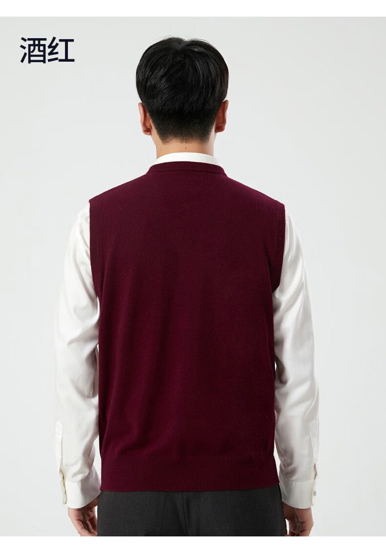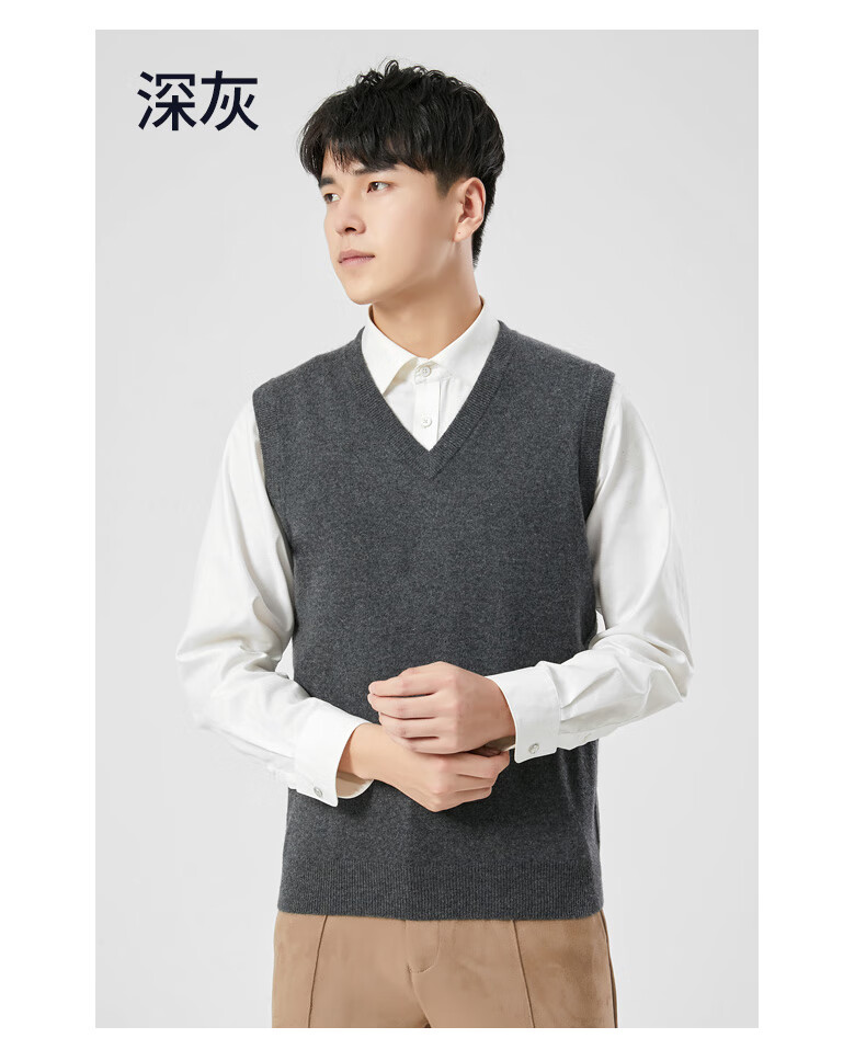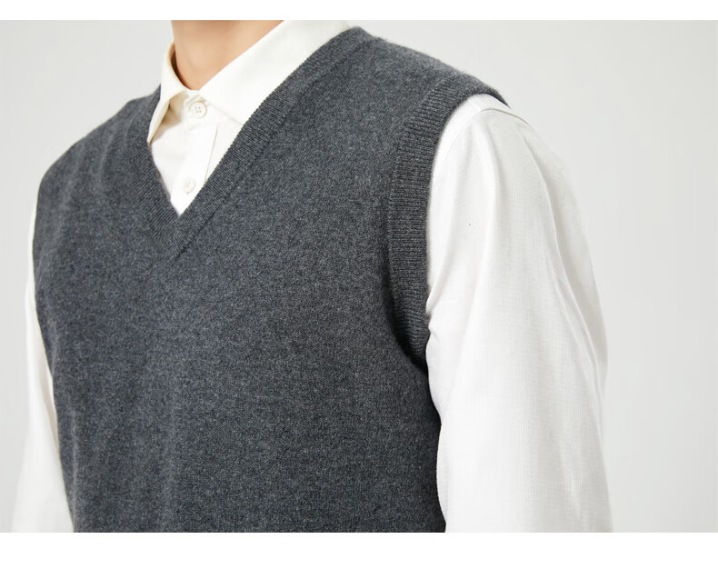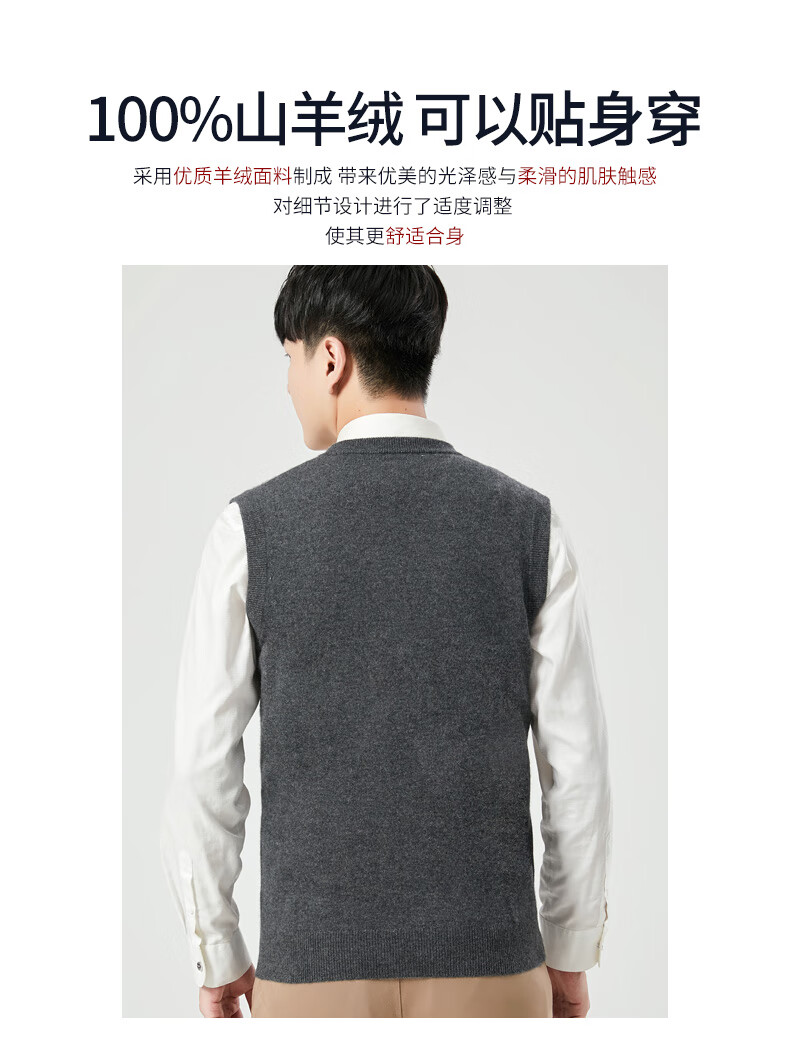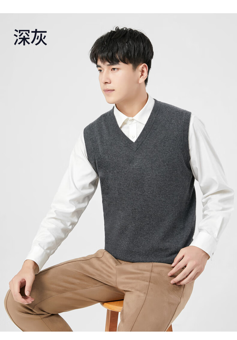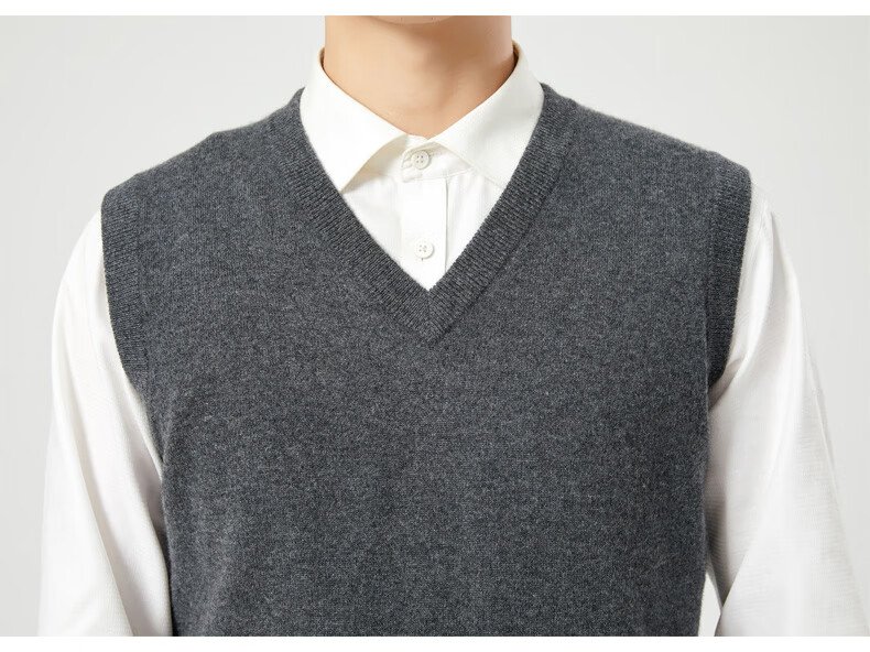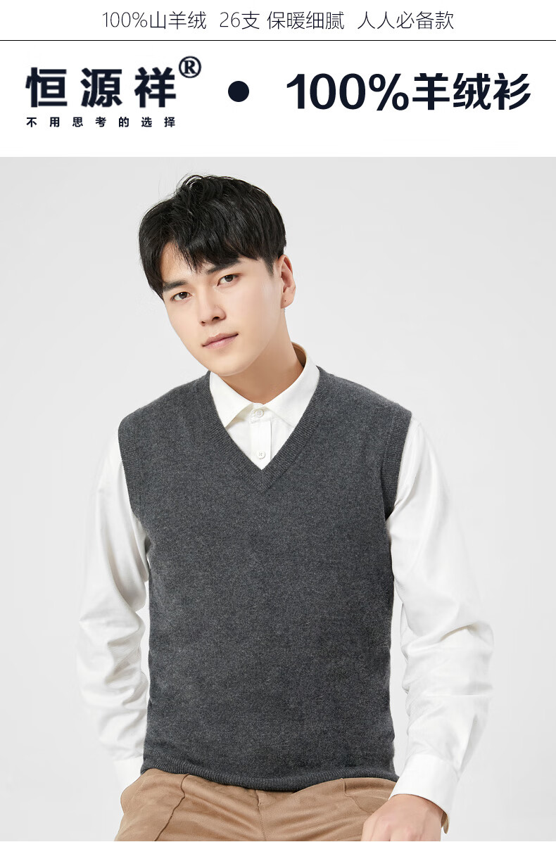 Hengyuanxiang cashmere sweater vest men's autumn and winter V-neck sleeveless knitted wool vest middle-aged and elderly men's vest dark gray 175