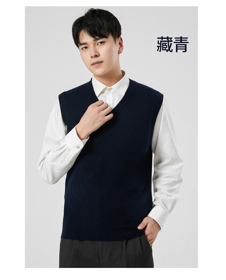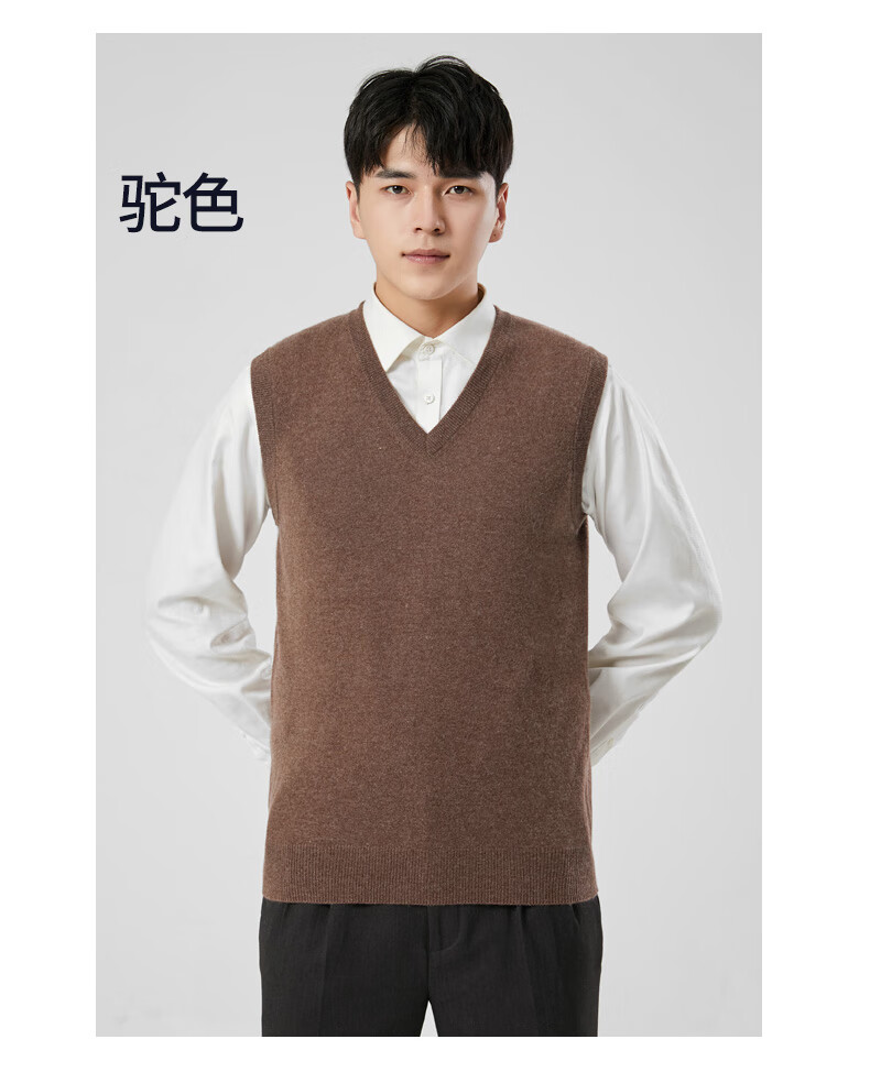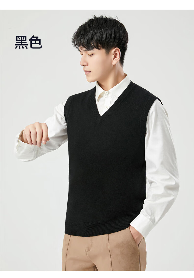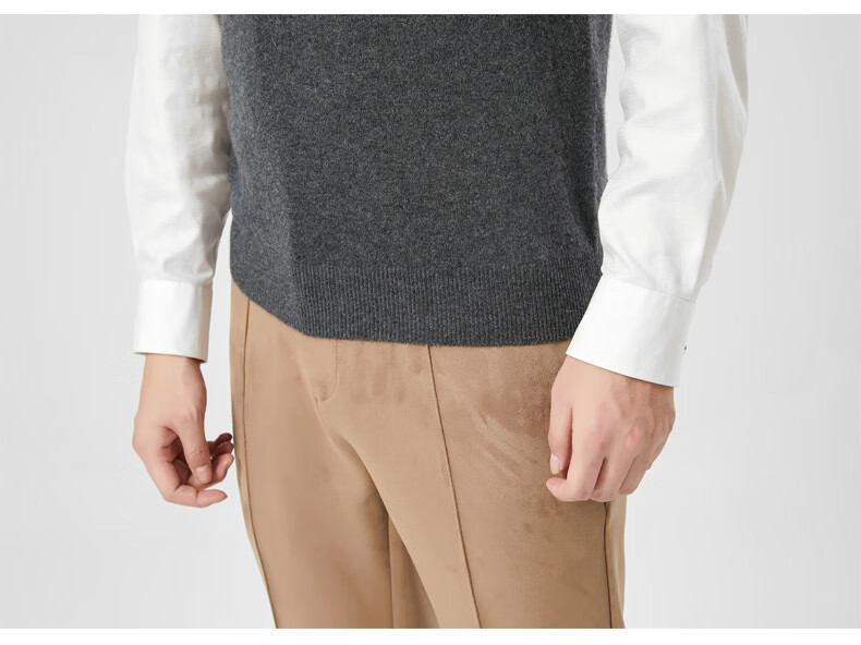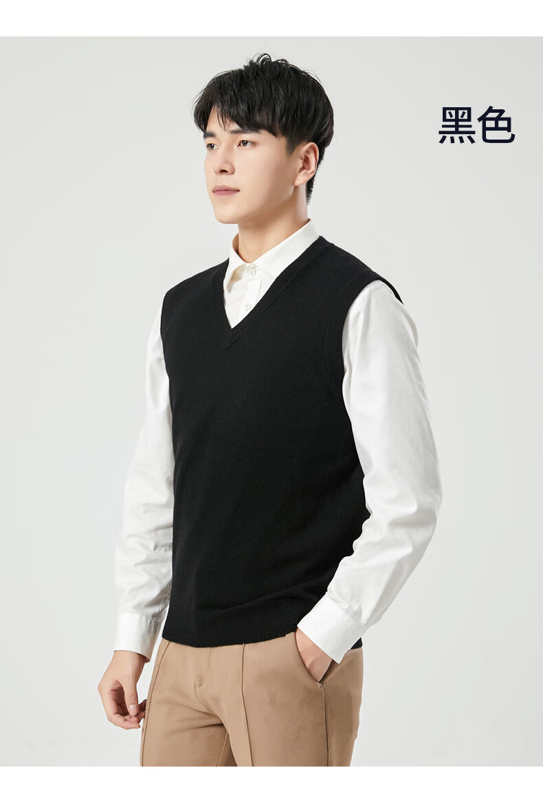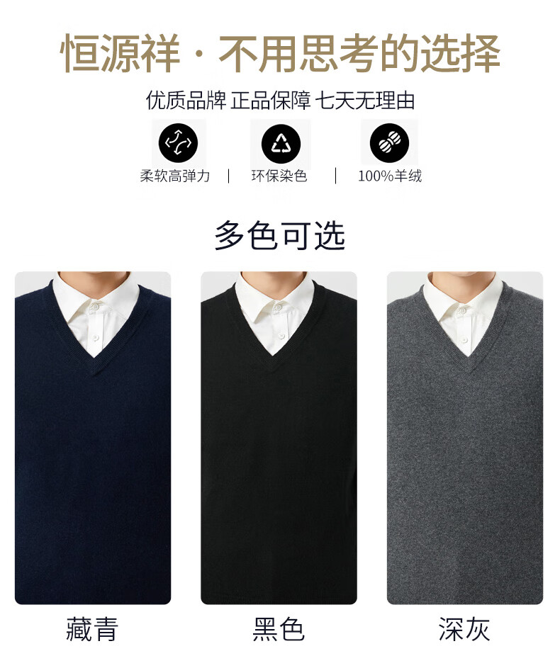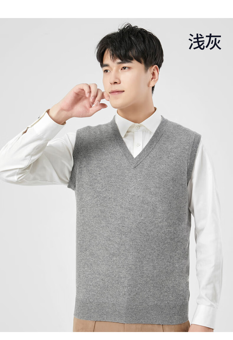 Hengyuanxiang cashmere sweater vest men's autumn and winter V-neck sleeveless knitted wool vest middle-aged and elderly men's vest dark gray 175
