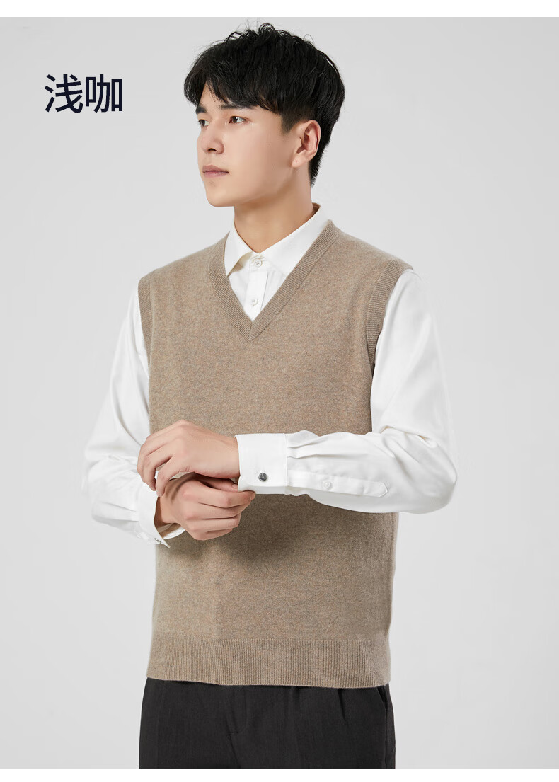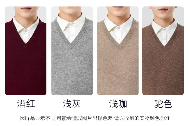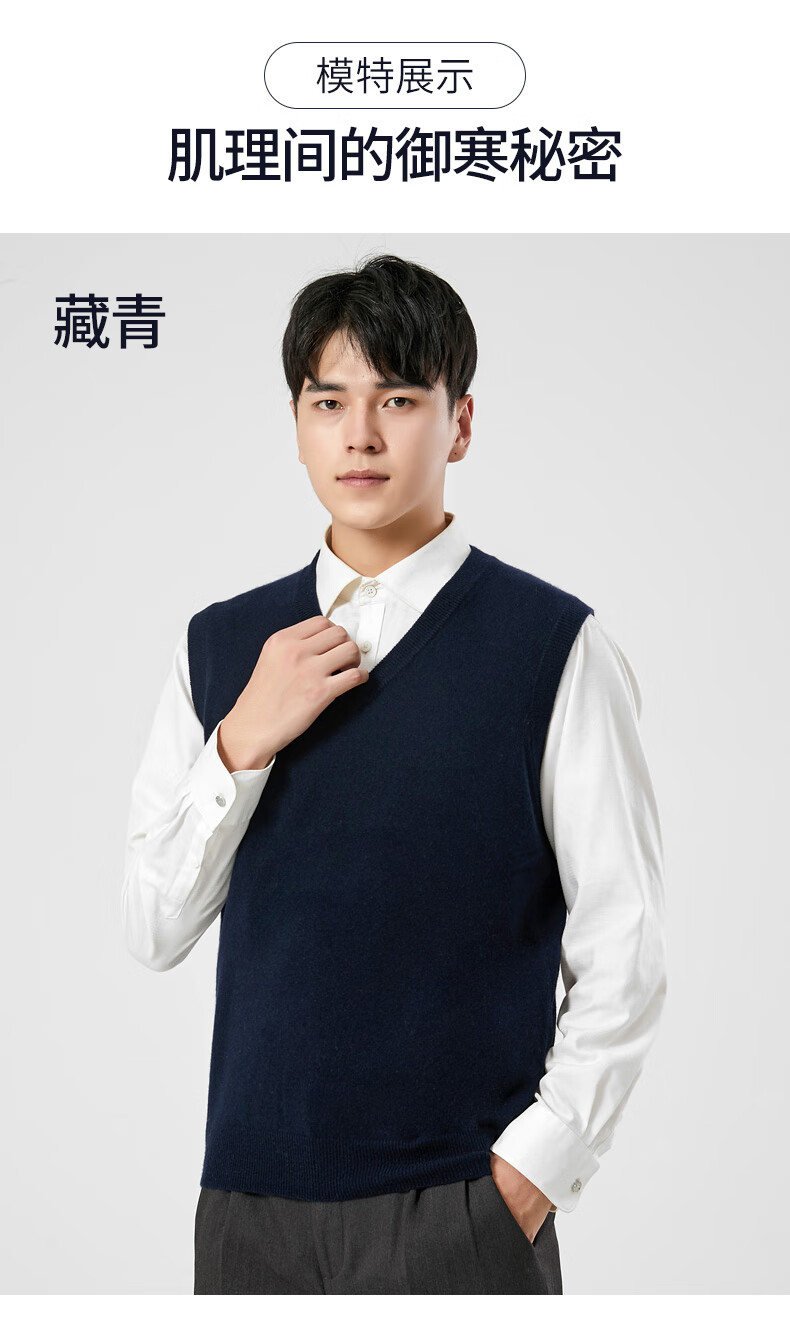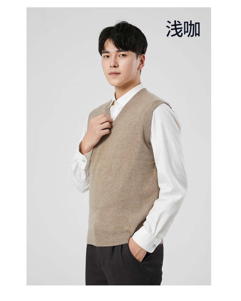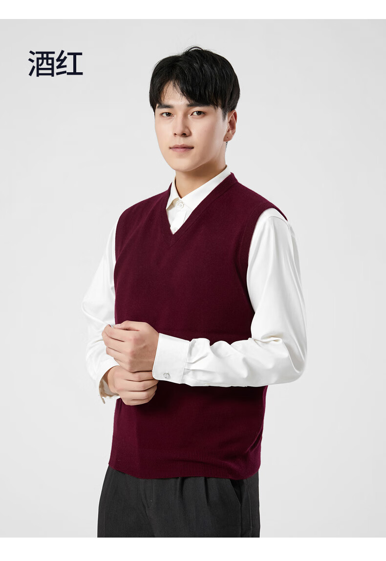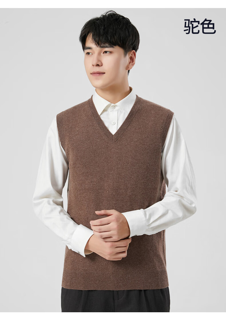 Hengyuanxiang cashmere sweater vest men's autumn and winter V-neck sleeveless knitted wool vest middle-aged and elderly men's vest dark gray 175