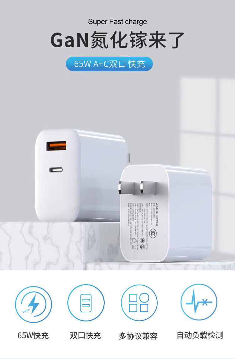 JABIL 65W PD gallium nitride fast charging is suitable for ASUS/HP/Zhan66/Xiaomi/Huawei/Dell/Acer/Lenovo/iPhone/LG Samsung power charger cable