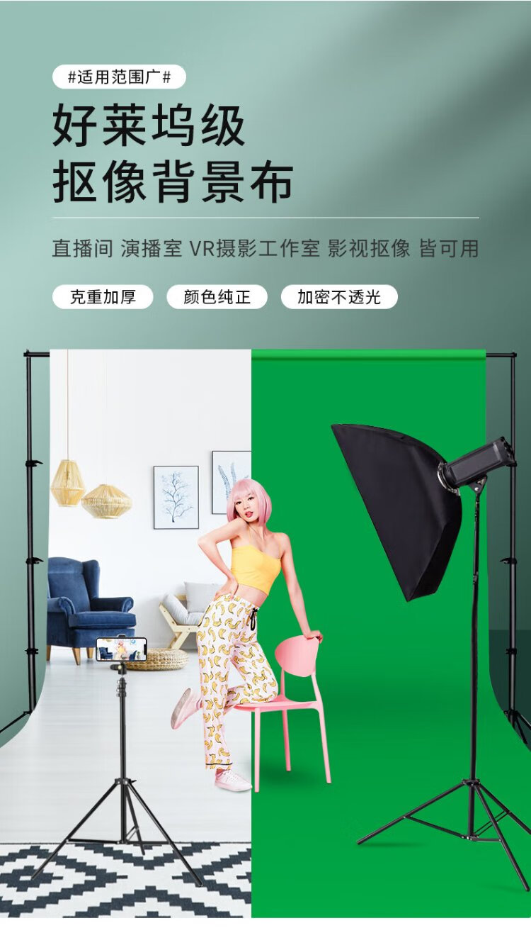 Yangfeisi YH1 professional live broadcast green screen keying cloth with bracket equipment complete set Thickened solid color green cloth background cloth photo photography cloth retractable portable Douyin video background stand
