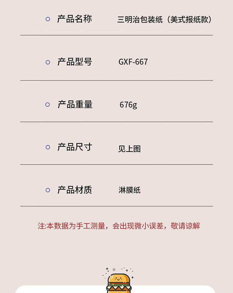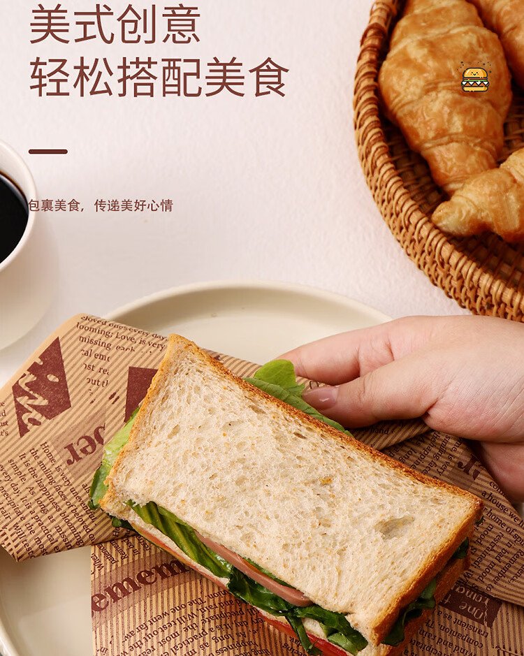 Badger sandwich wrapping paper toast burger hand cake baking greaseproof paper breakfast portable laminating paper 100 sheets