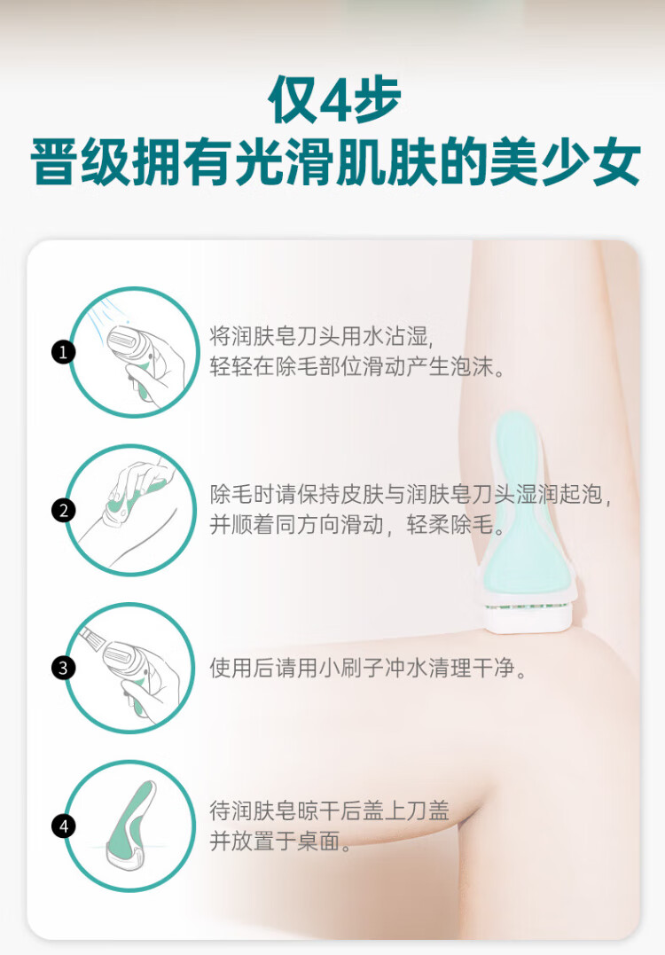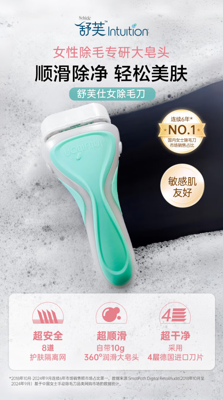 Schick Large Soap Head Sensitive Skin Hair Removal Knife 1 handle 2 heads Armpit shaving contains aloe vera non-hair removal cream