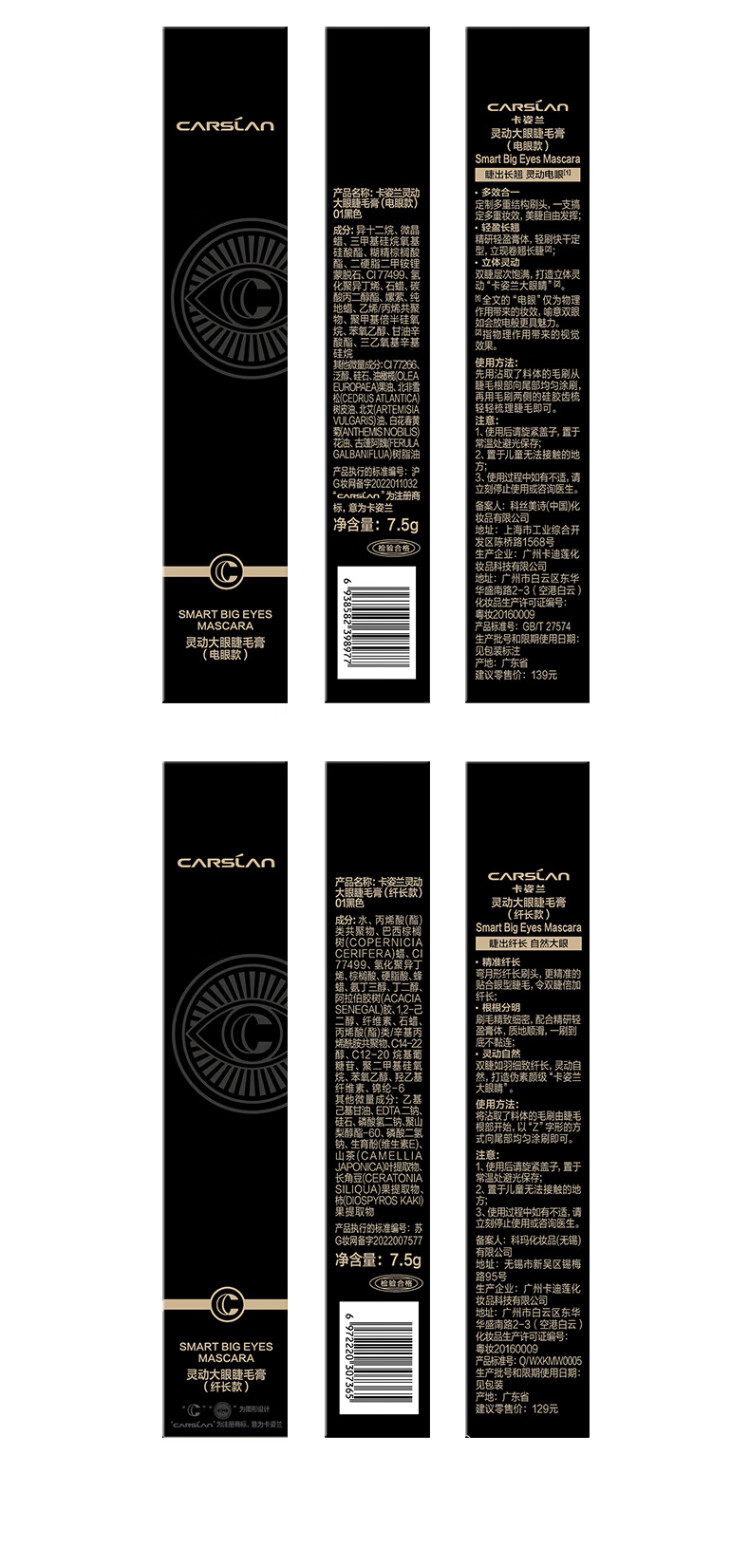 Carslan Smart Big Eye Mascara (Slim Style) Deep Slim Waterproof No Smudge Black 7.5g Birthday Gift for Women