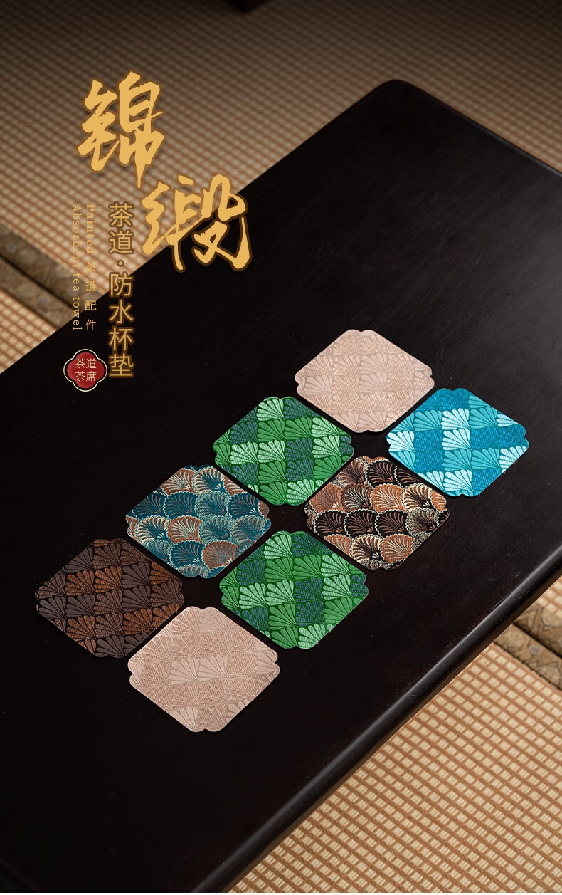 Su's Ceramic Kung Fu Tea Coasters, National Trendy Taiwan Brocade Coasters, 8 Pack 9*9cmJ0609