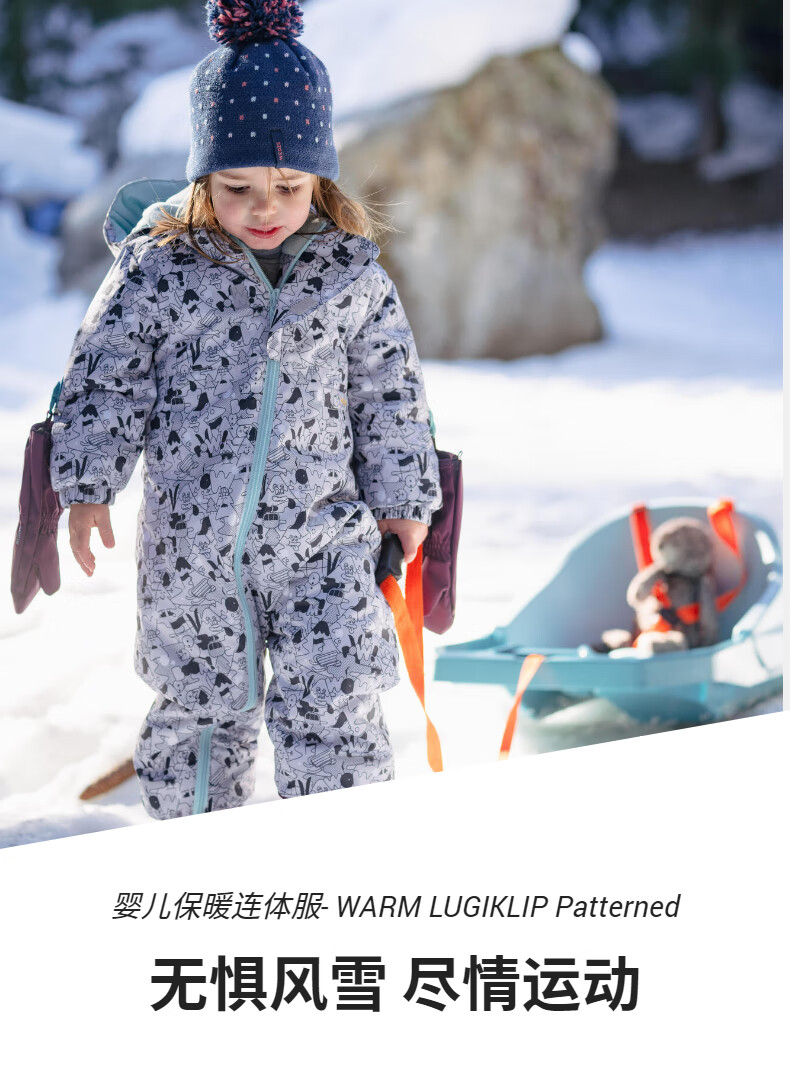 Decathlon baby one-piece warm, lightweight, dry, waterproof, comfortable, soft and easy to put on and take off Gray 89/95cm-4587704