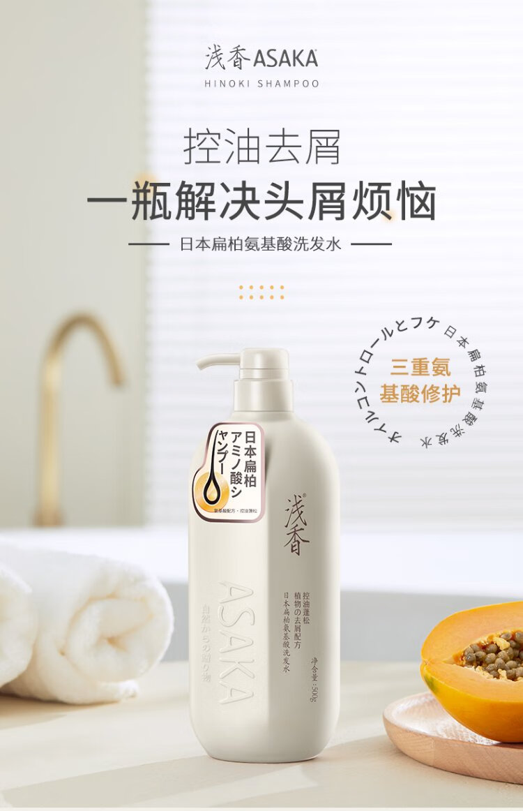 Шампунь ASAKA против перхоти, контроль жирности, шампунь для мужчин и женщин, аминокислотный шампунь, кипарисовый шампунь, стойкий аромат, 500 г