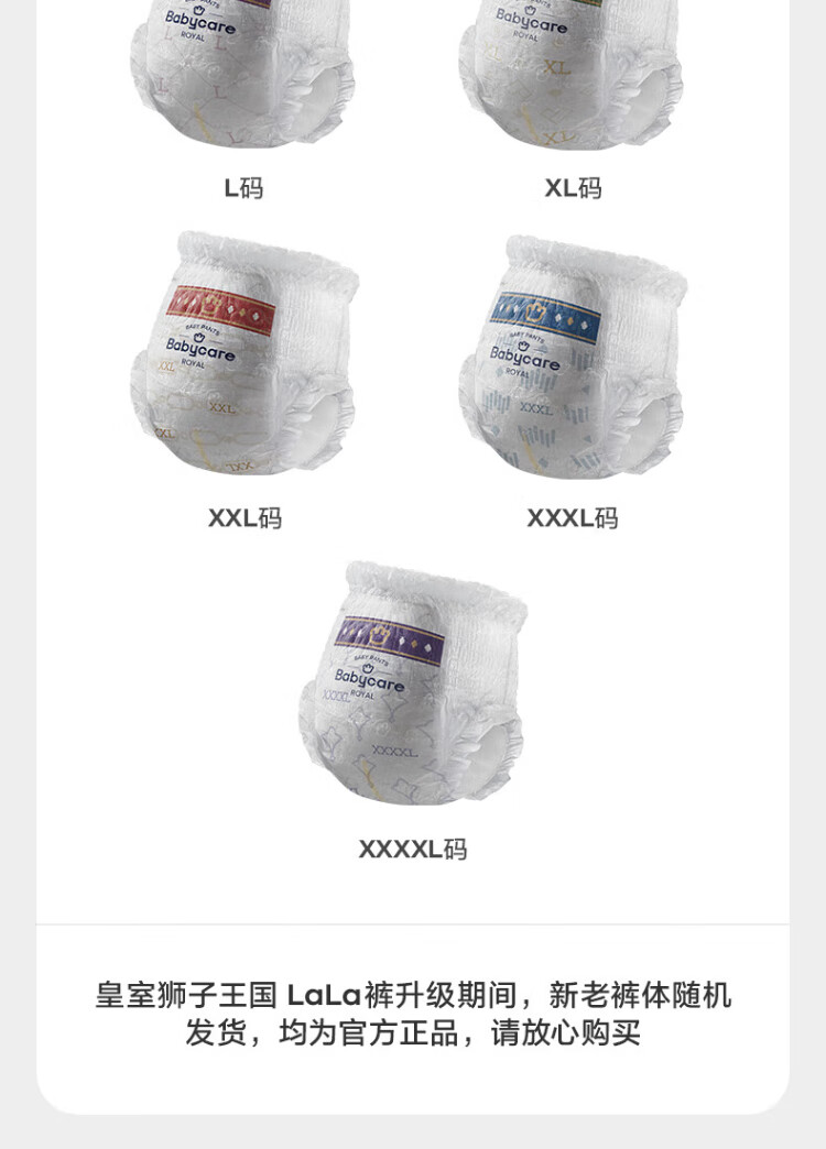 Babycare royal lion kingdom pull-up pants large box XL58 baby diapers breathable and skin-friendly