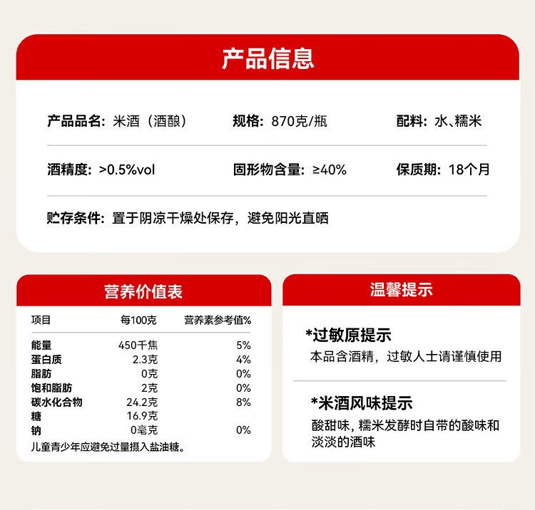 Mi Popo glutinous rice wine 870g*1 bottled wine fermented grains 0 added Xiaogan glutinous rice wine juice sweet wine confinement Hubei specialty