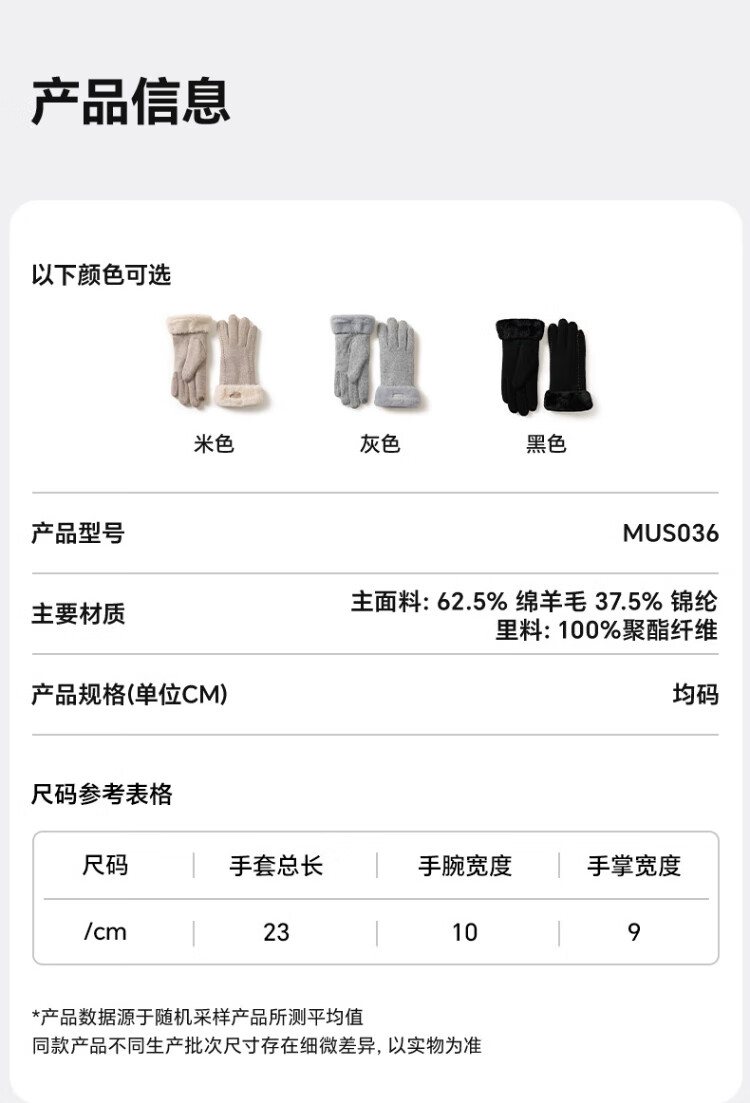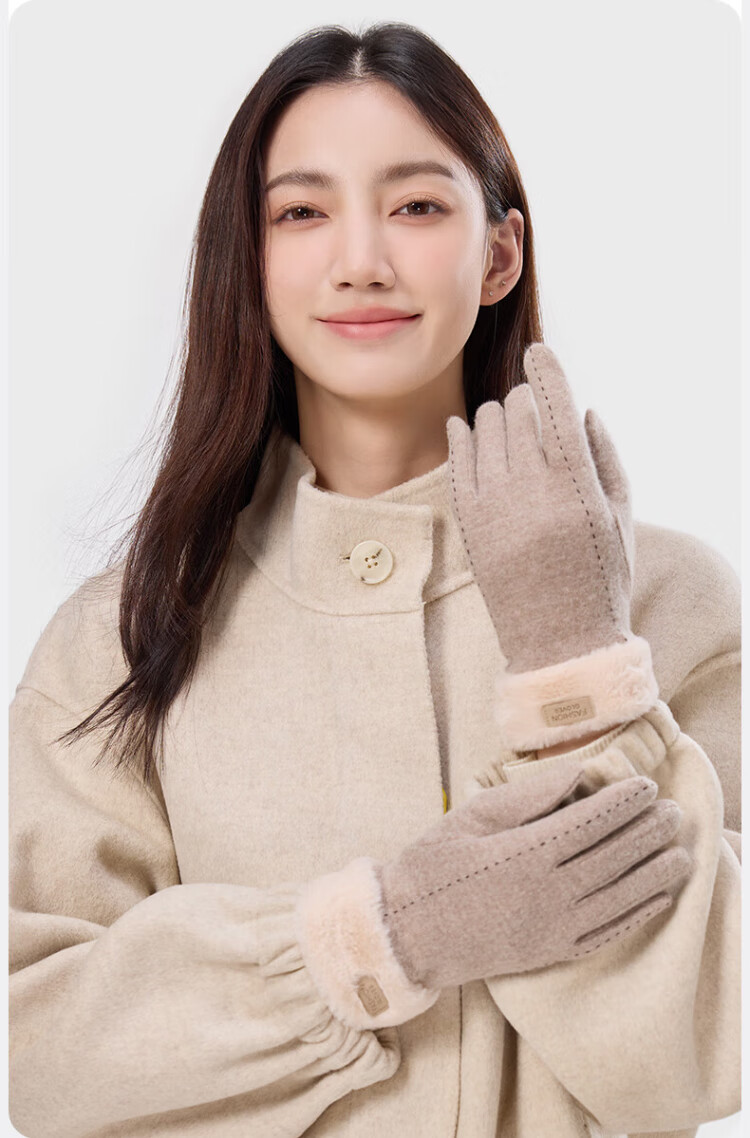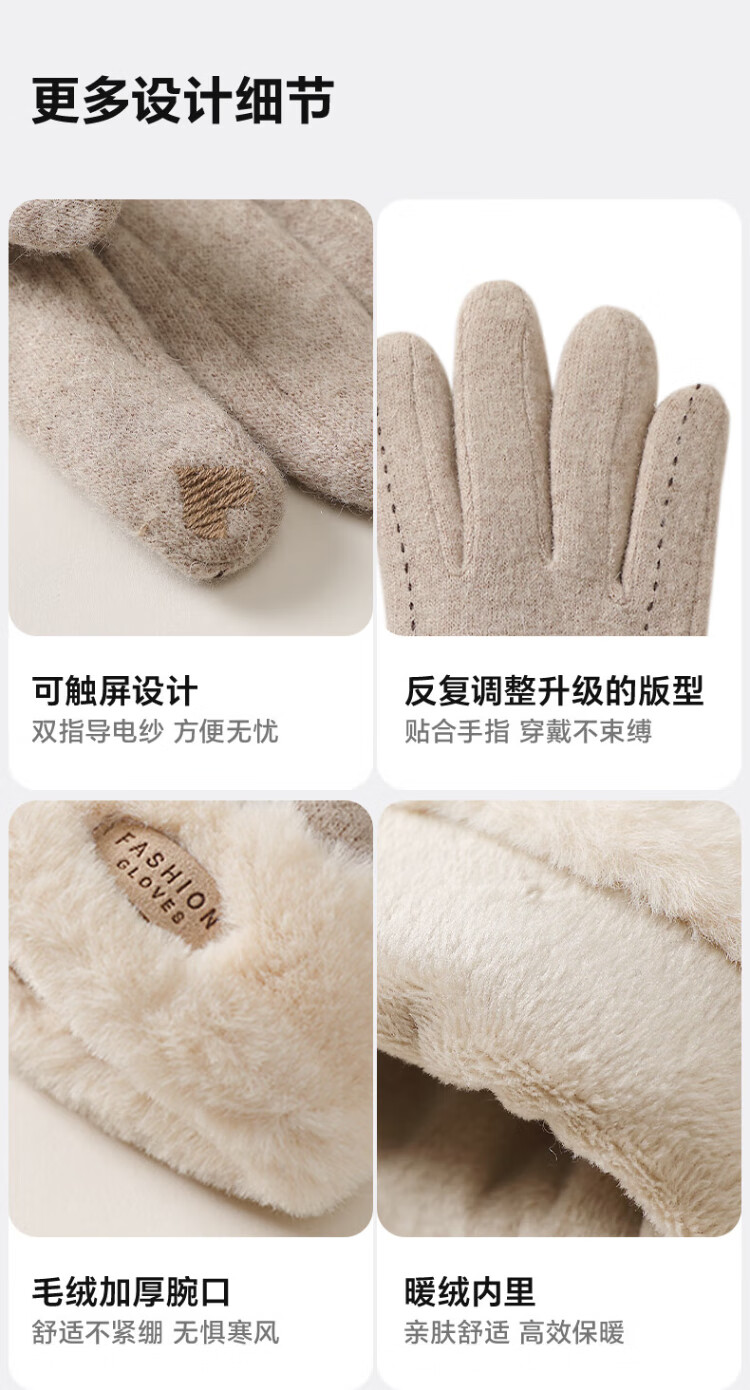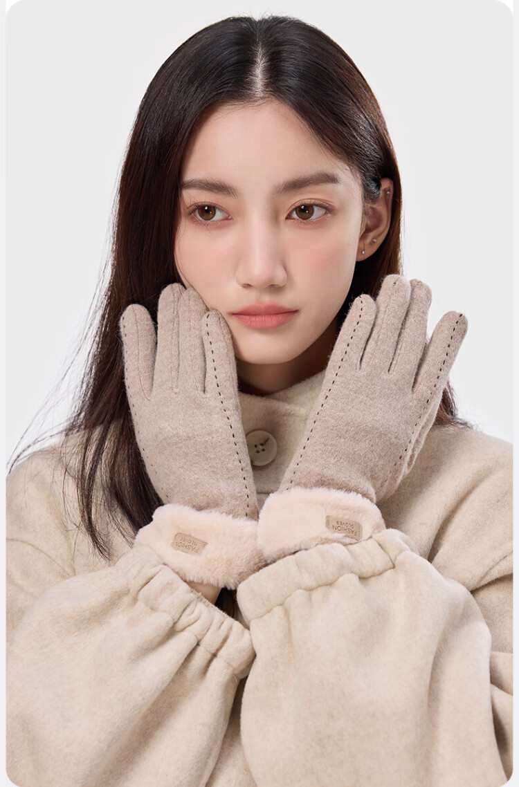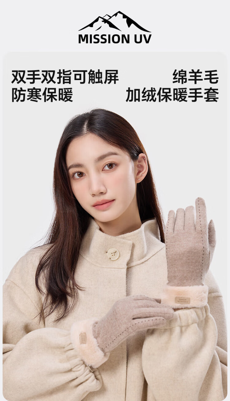 MISSION UV wool warm gloves for women in autumn and winter, windproof and coldproof plus velvet for cycling, driving, electric bicycles, touch screen gloves