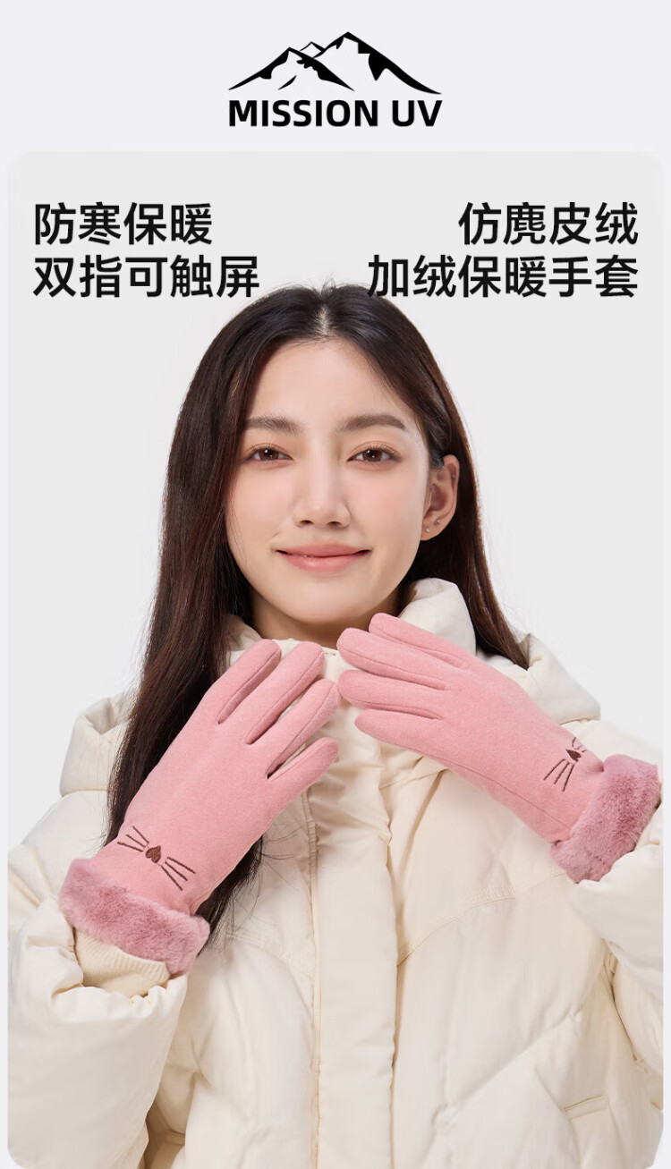 MISSION UV warm gloves for women in autumn and winter, windproof, coldproof, antifreeze, velvet, cycling, driving, electric bicycle, touch screen gloves