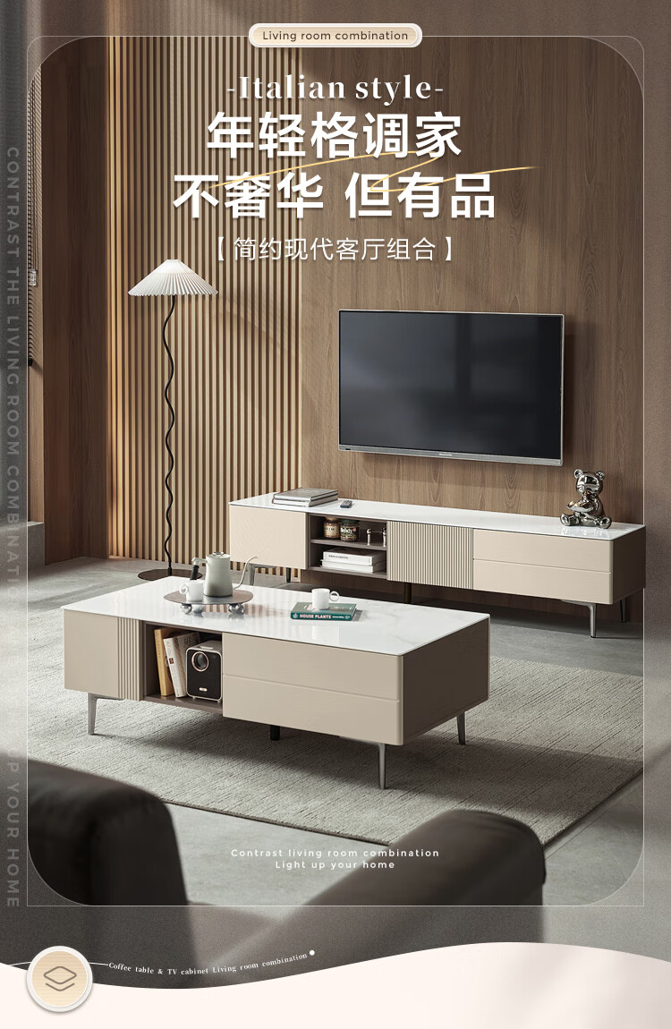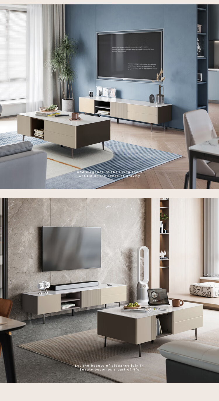 Lin's Home Furnishing Original Lin's Wood Modern Simple Slate Light Luxury Coffee Table TV Cabinet Combination UC1L-A Coffee Table