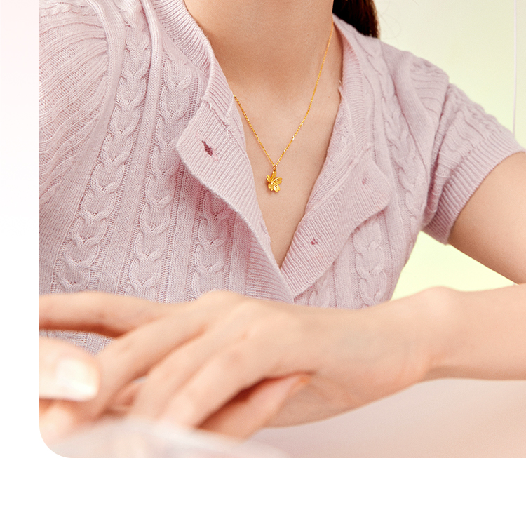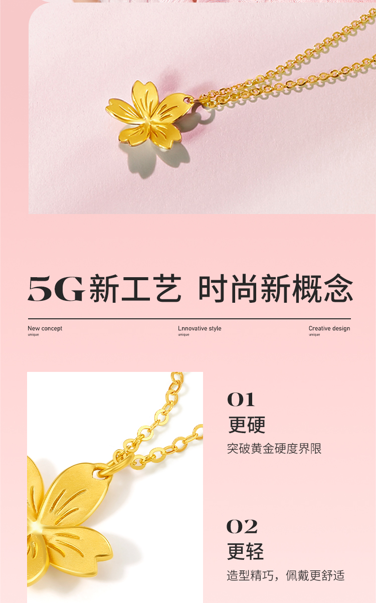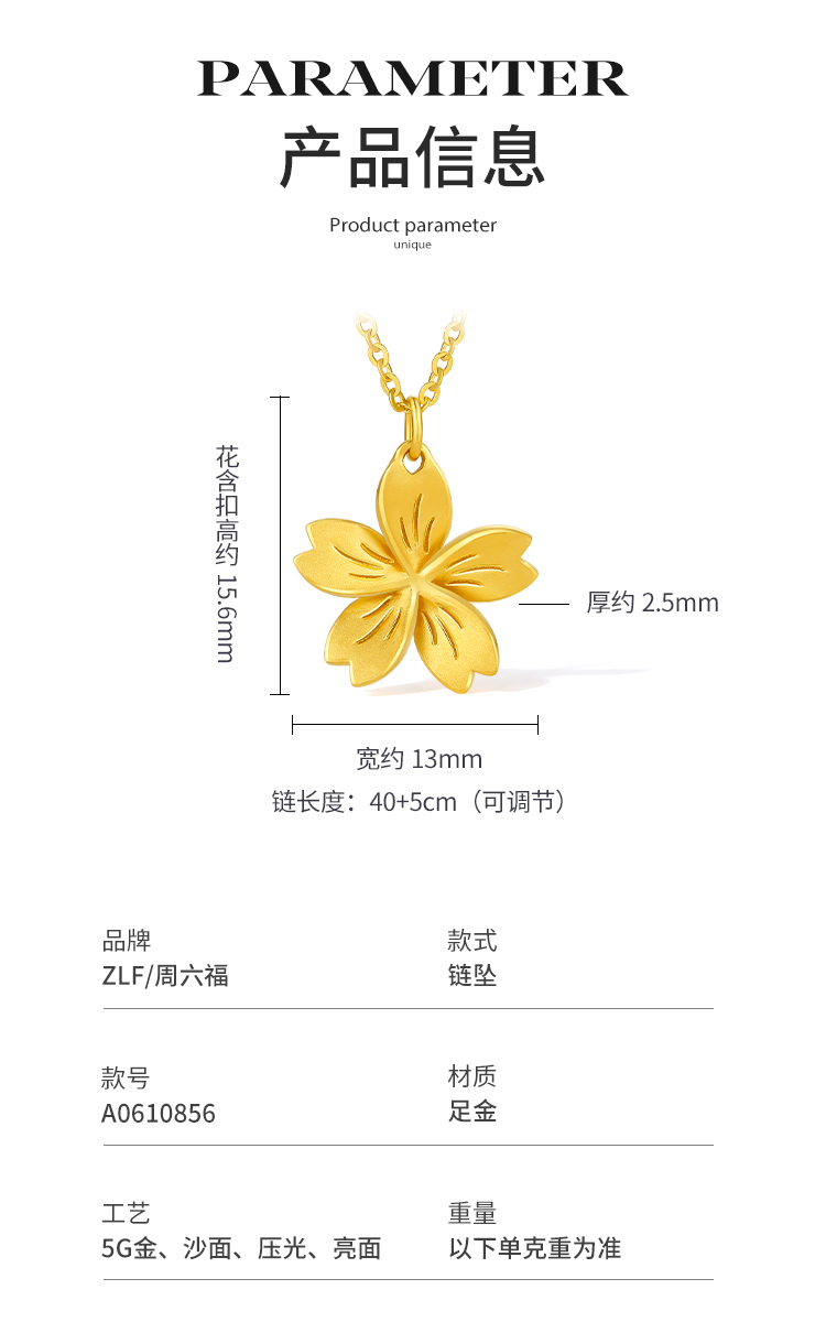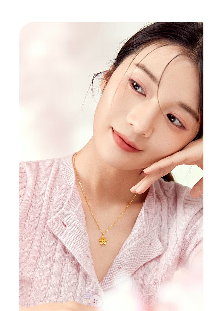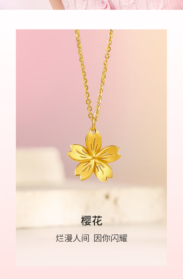 Saturday Fu 5G Craftsmanship Pure Gold Necklace Pendant for Women Cherry Blossom Price A0610856 About 4.21g 40+5cm Gift