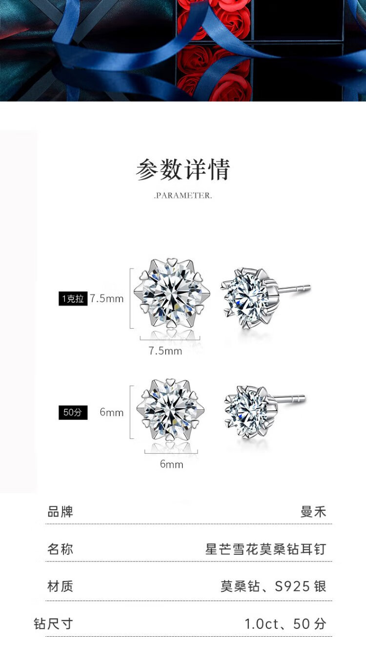 MANHE S925 Silver Moissanite Earrings Women's Earrings Women's 2025 New Earrings Wife's Birthday Gift for Girlfriends