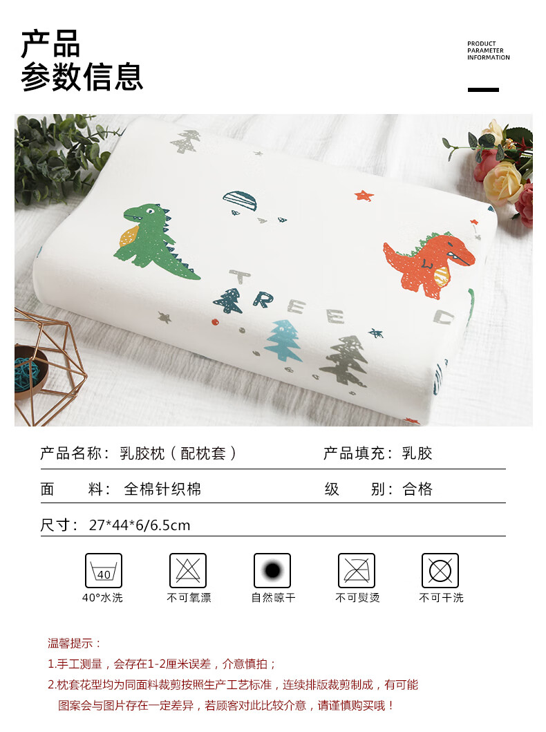 Ivy children's pillow latex pillow baby kindergarten nap student pillow core latex pillow small crocodile 44*27cm