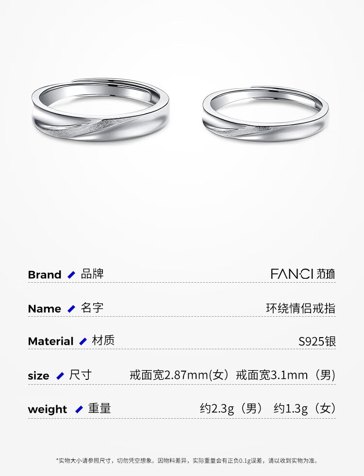 Fanci Fan Qi surround couple ring adjustable silver jewelry ring pair of rings birthday confession gift for girlfriend