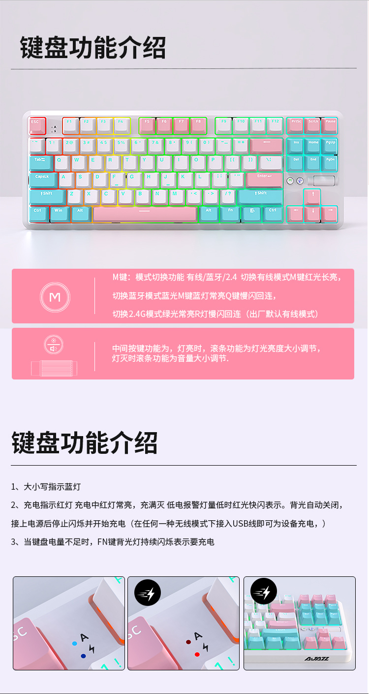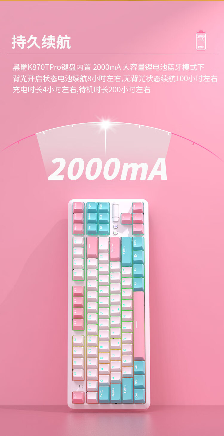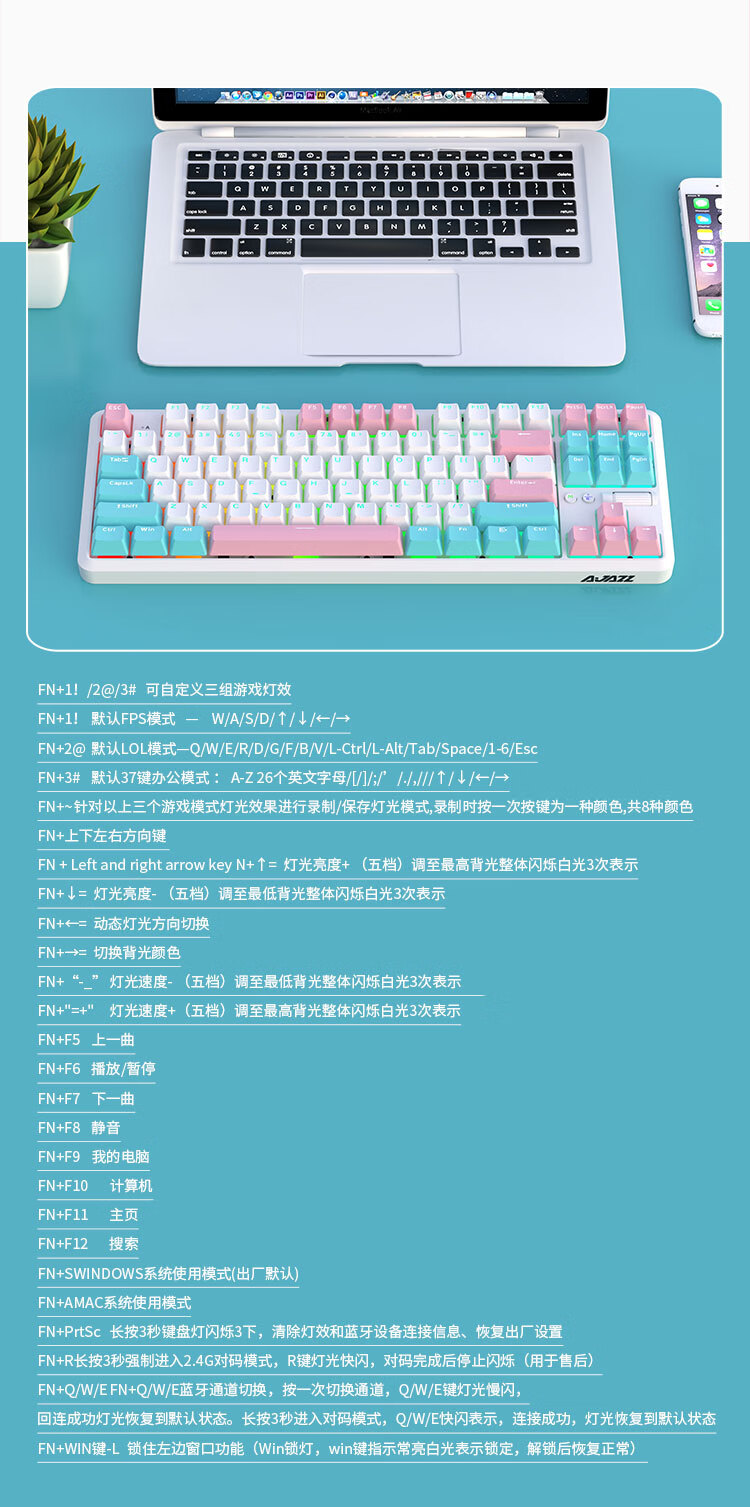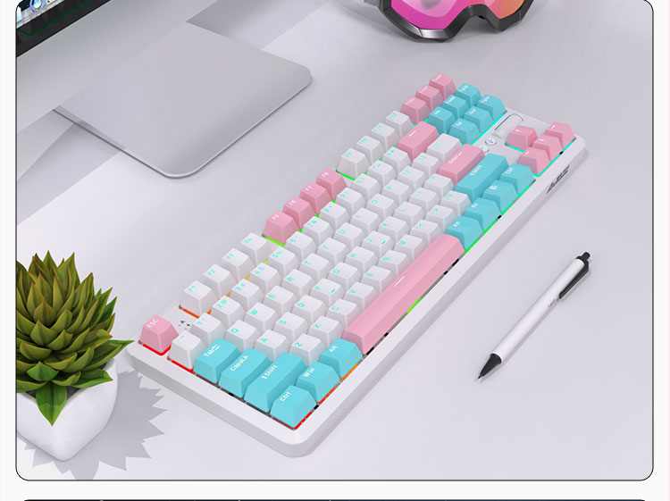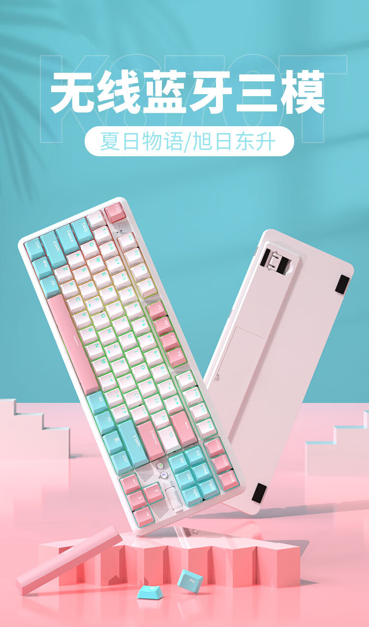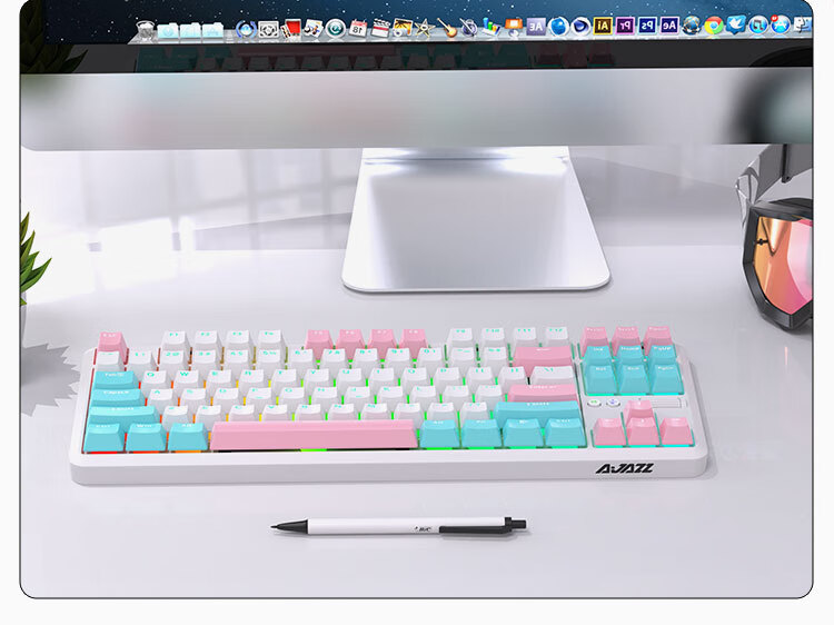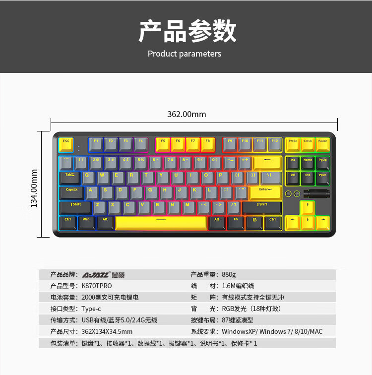 AJAZZ K870Tpro three-mode mechanical keyboard Bluetooth/2.4G/wired/87 keys PBT keycap RGB light e-sports game office white red axis