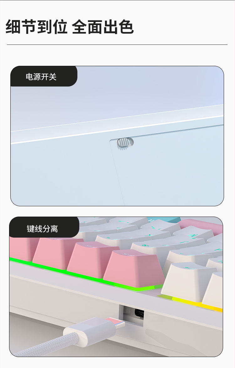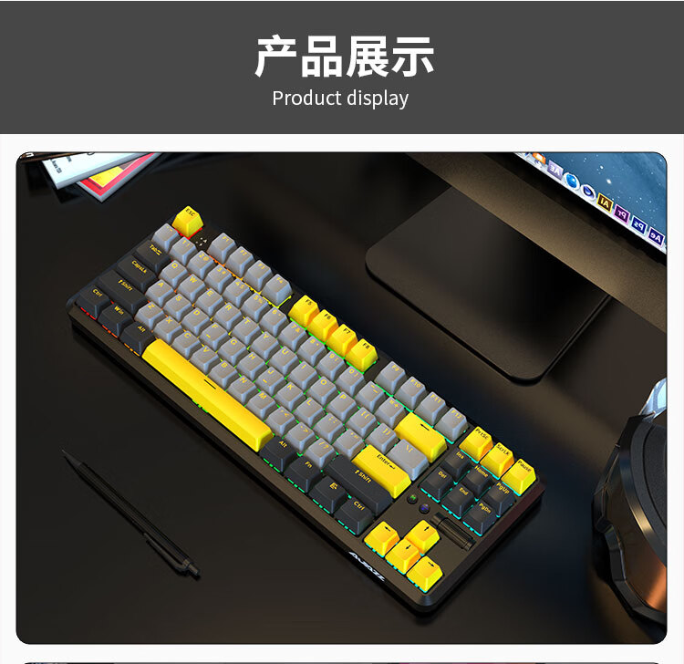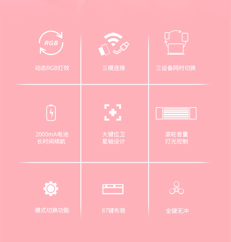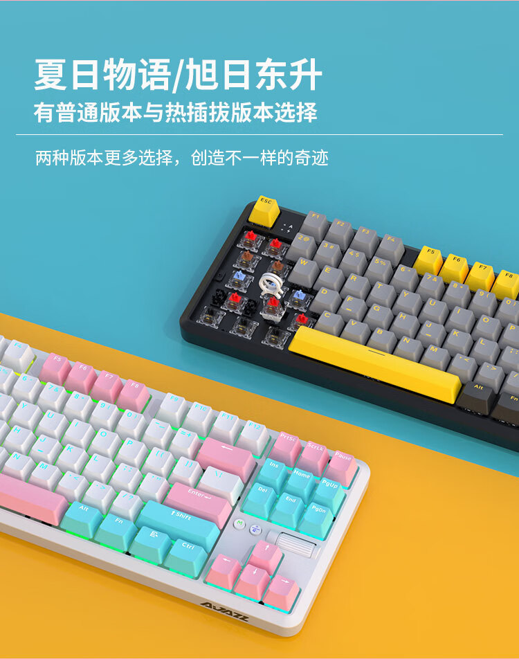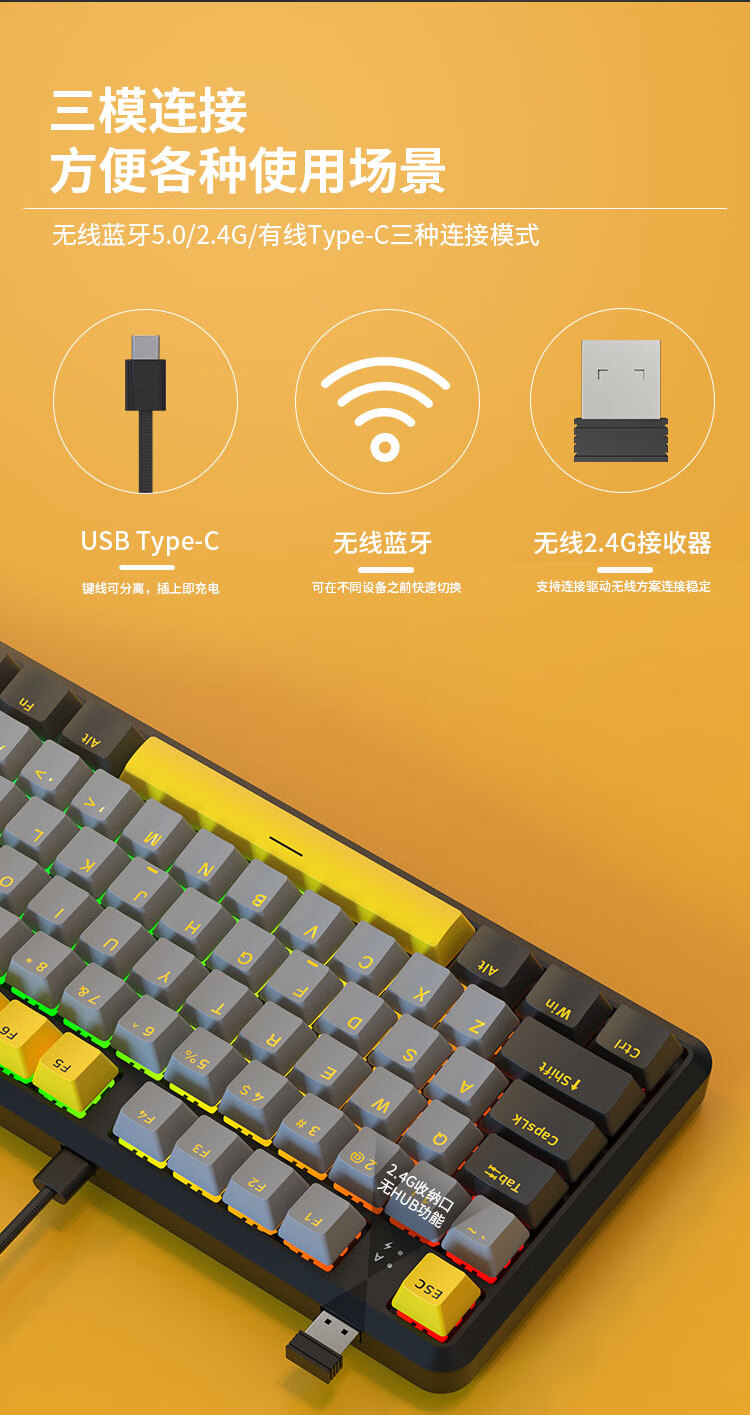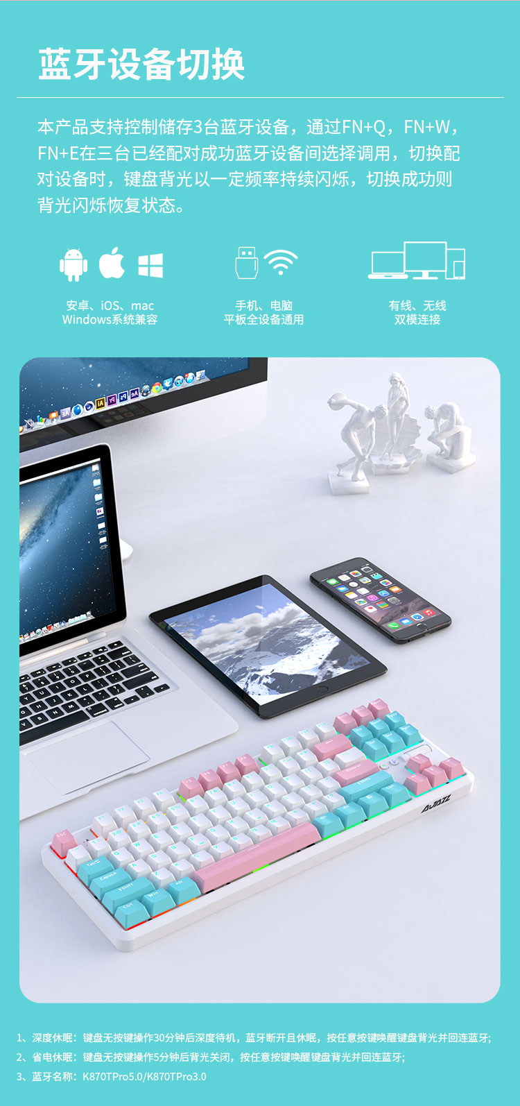 AJAZZ K870Tpro three-mode mechanical keyboard Bluetooth/2.4G/wired/87 keys PBT keycap RGB light e-sports game office white red axis