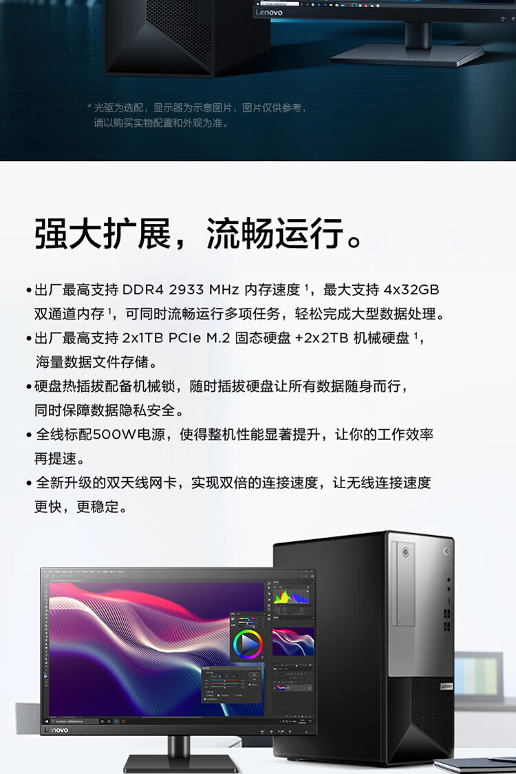 Lenovo Yangtian P780 commercial high-end graphics desktop customized I7-10700 32G 2T+2T solid state driverless RTX2060 6G independent display 31.5 LCD supports win7