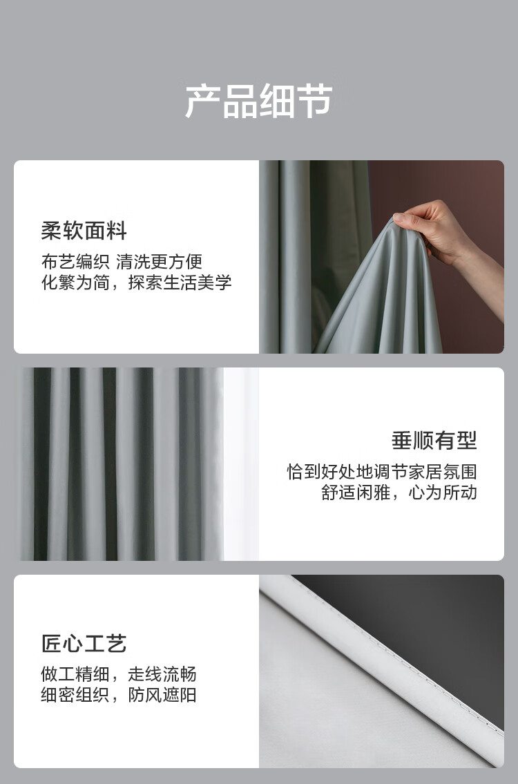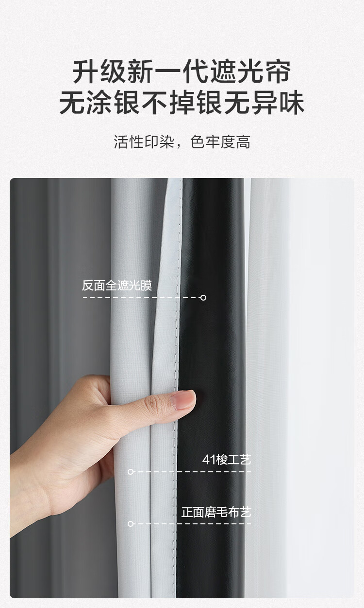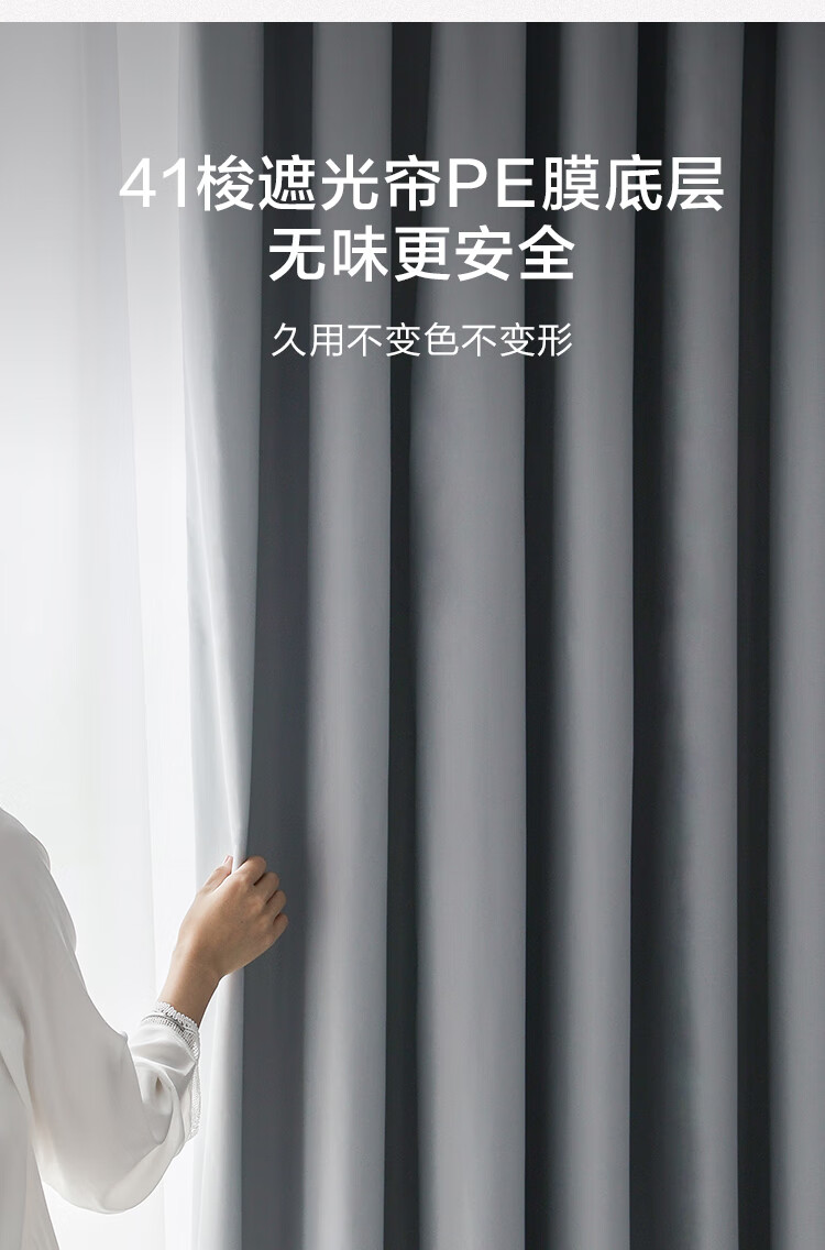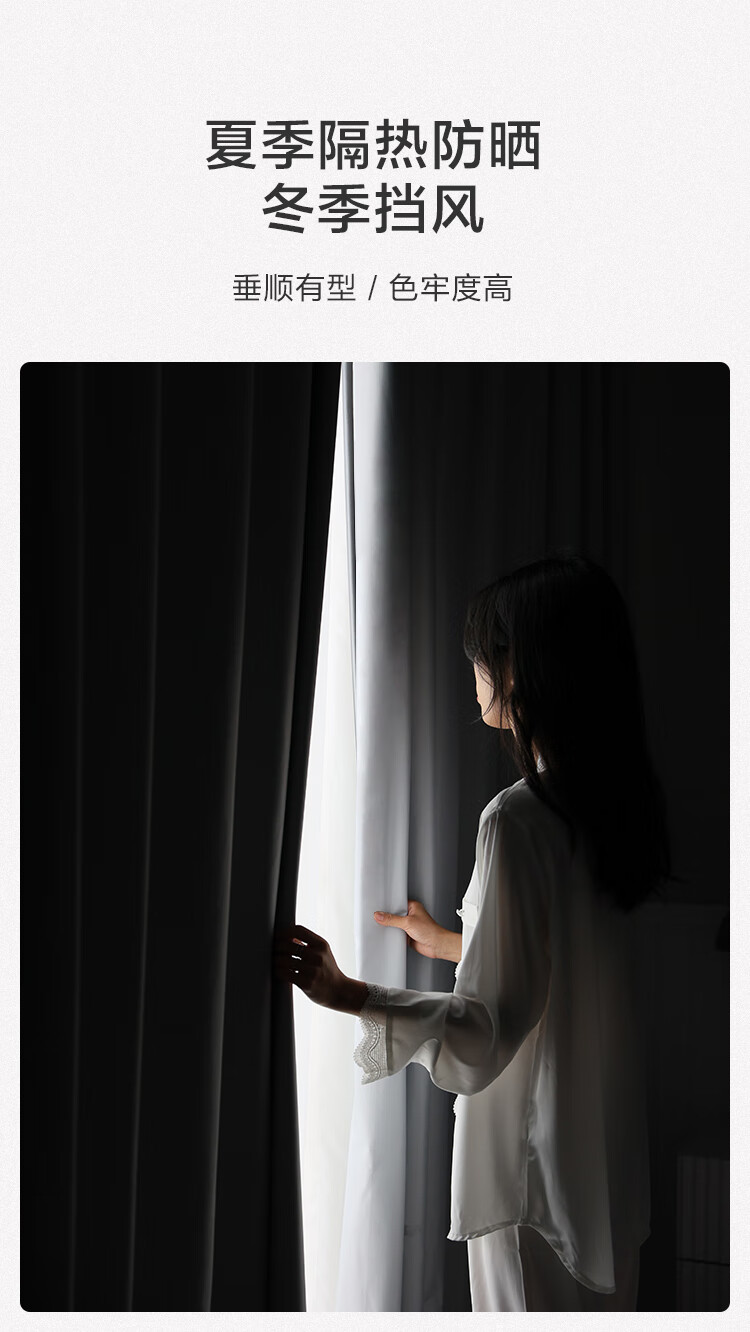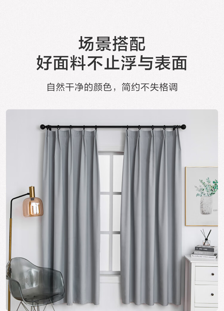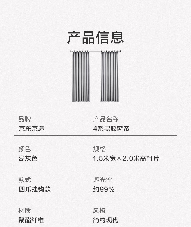 Jingdong-made vinyl light gray curtains 99% full blackout curtain fabric bay window bedroom sunshade hook type 1.5 meters wide * 2 meters high