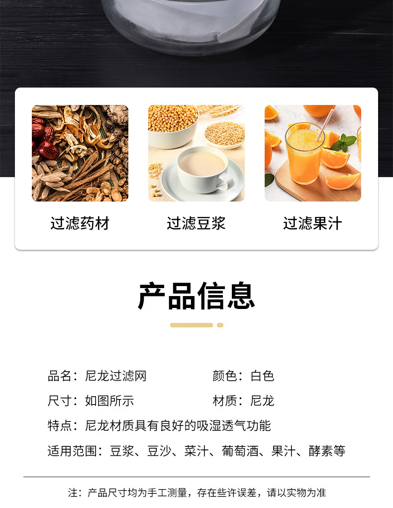 Baijie gauze filter artifact kitchen soy milk filter household traditional Chinese medicine slag bag ultra-fine nylon water squeezer 2 pieces