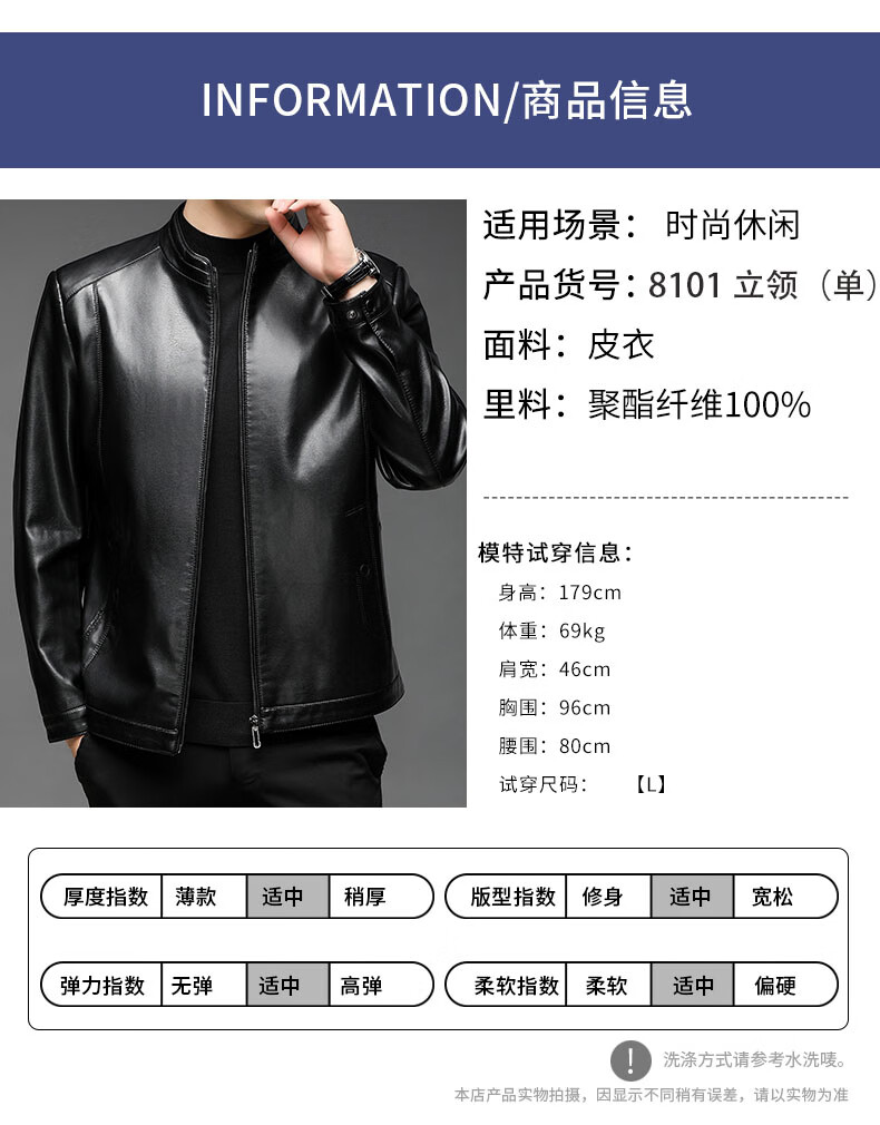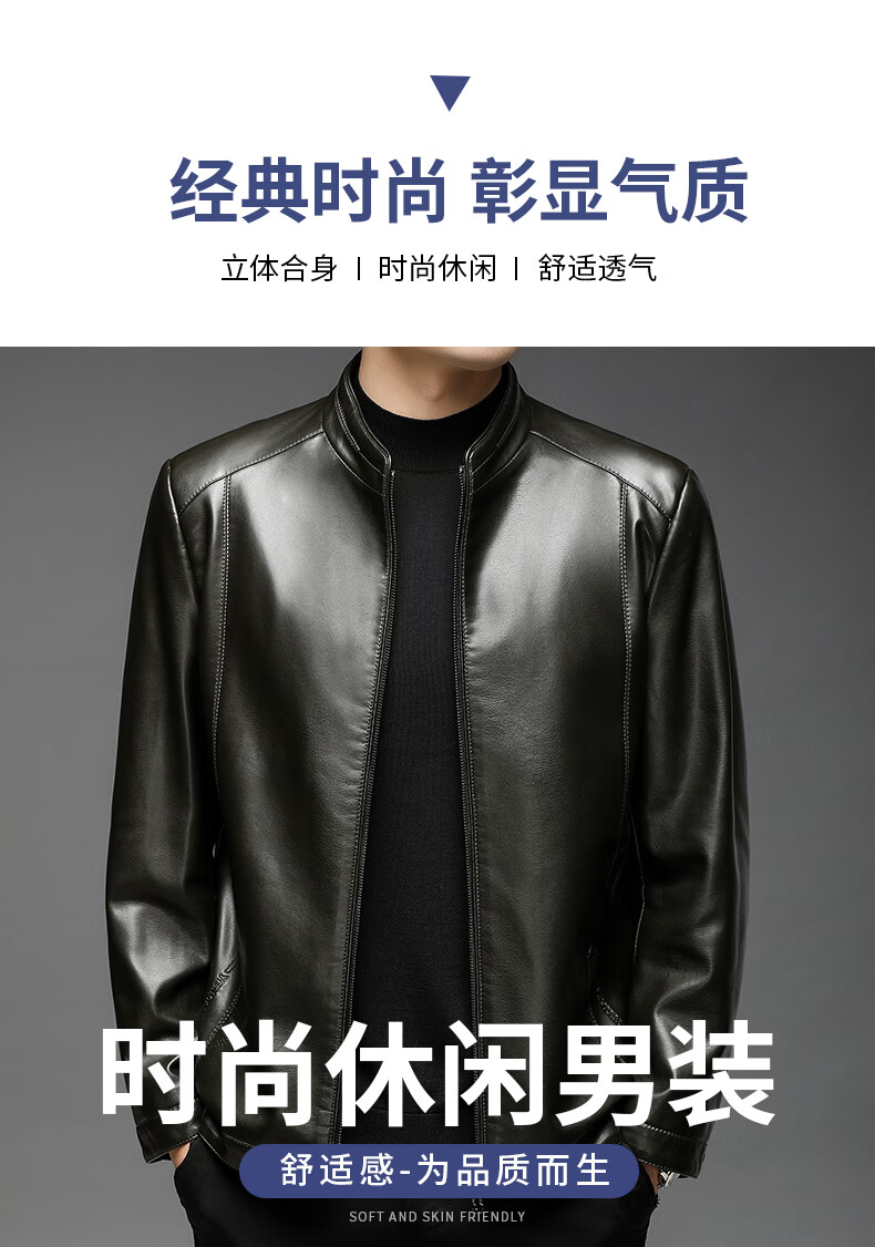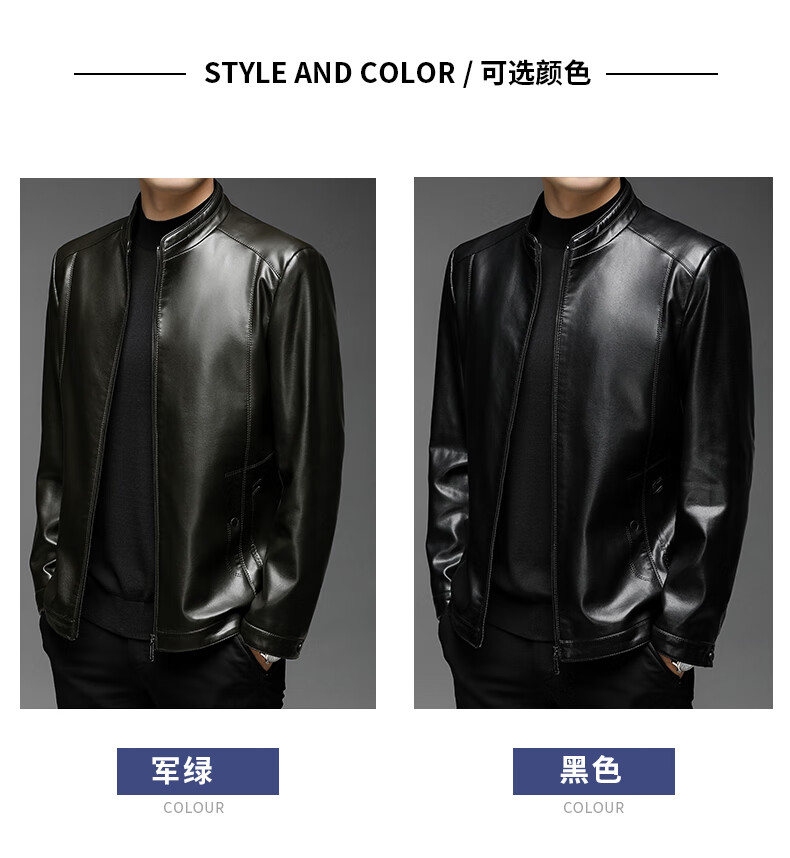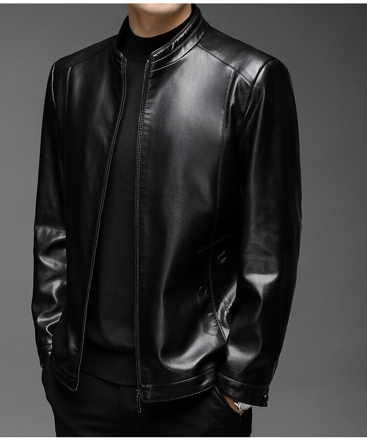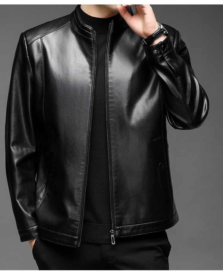 Yalu Leather Jacket Men's Spring and Autumn Business Casual Stand Collar Solid Color Leather Jacket Young and Middle-aged Men's Dad's Jacket Jacket