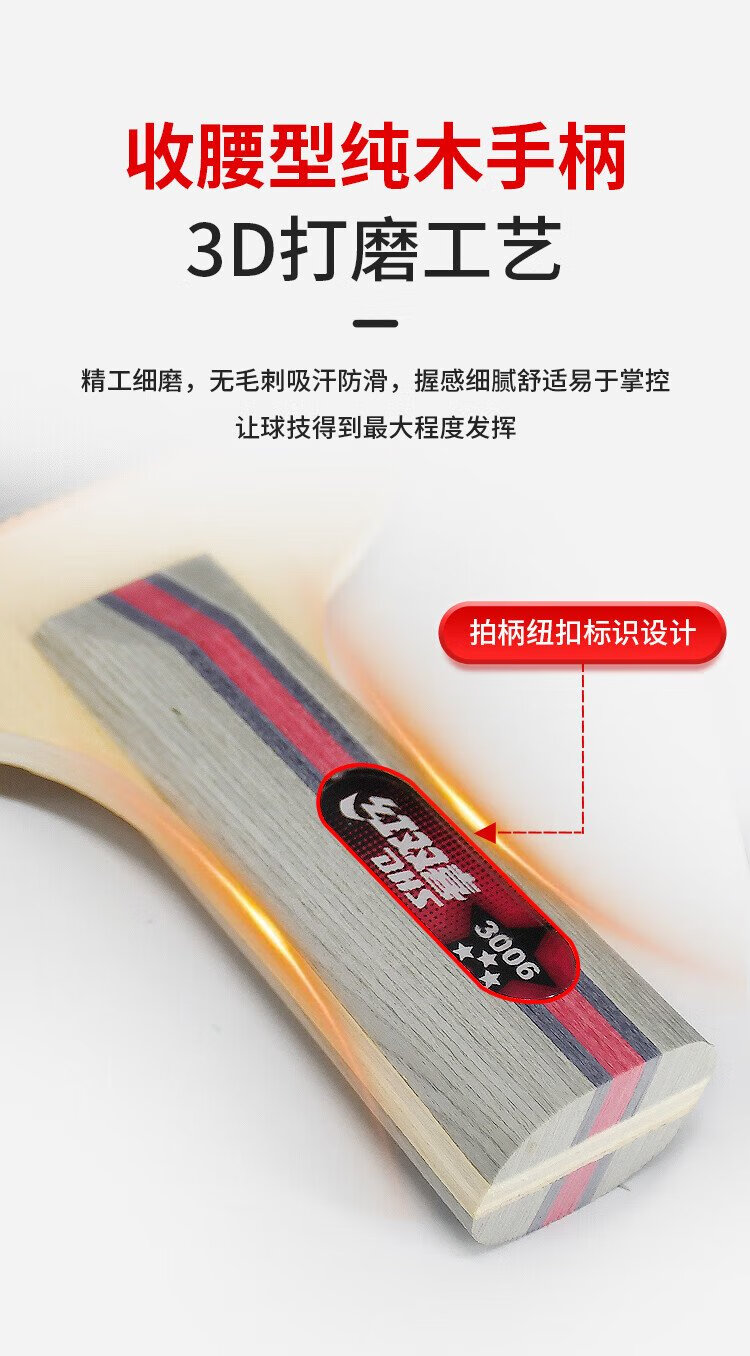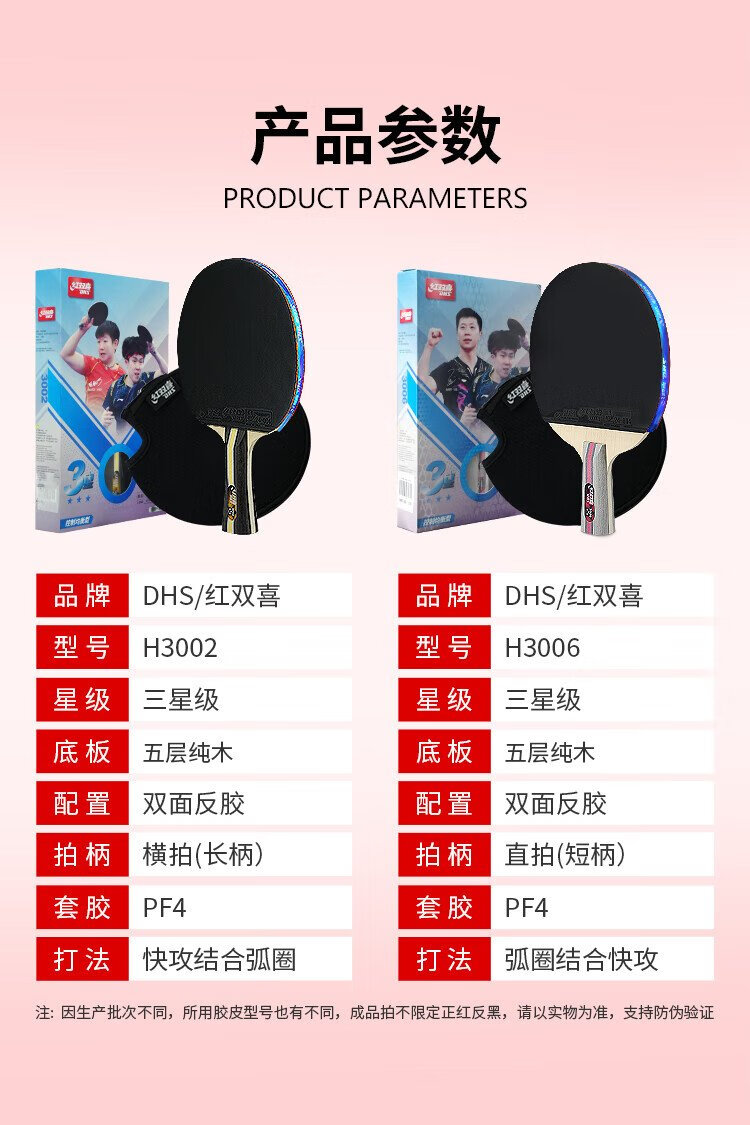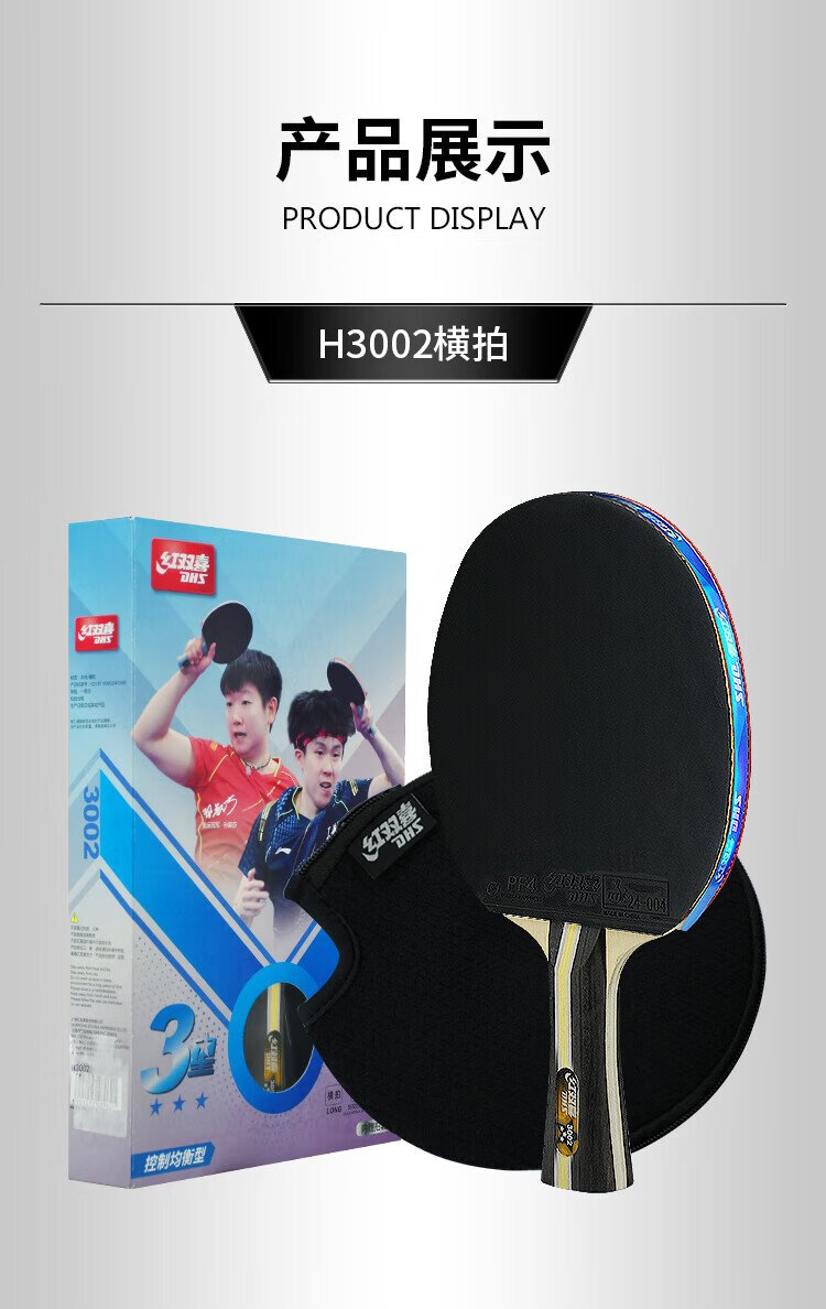 Double Happiness (DHS) table tennis racket three-star horizontal racket advanced H3002 anti-adhesive single racket with racket bag