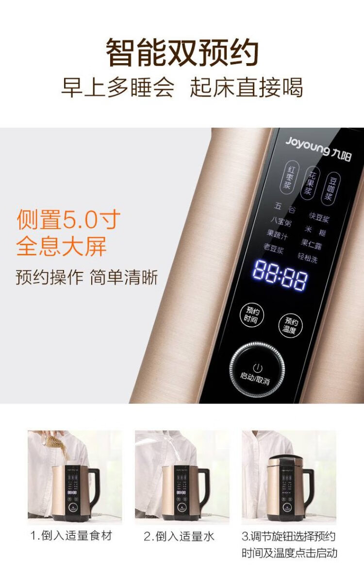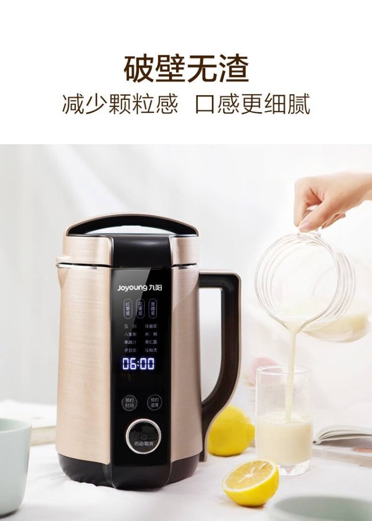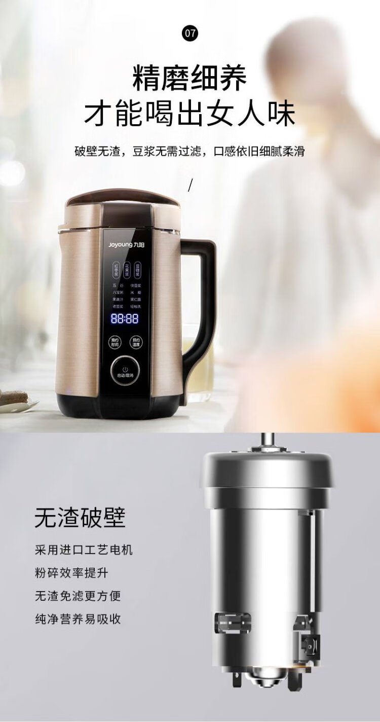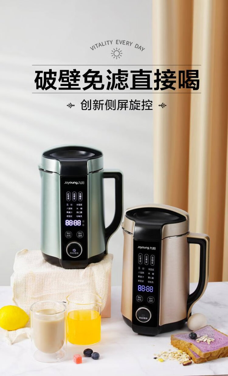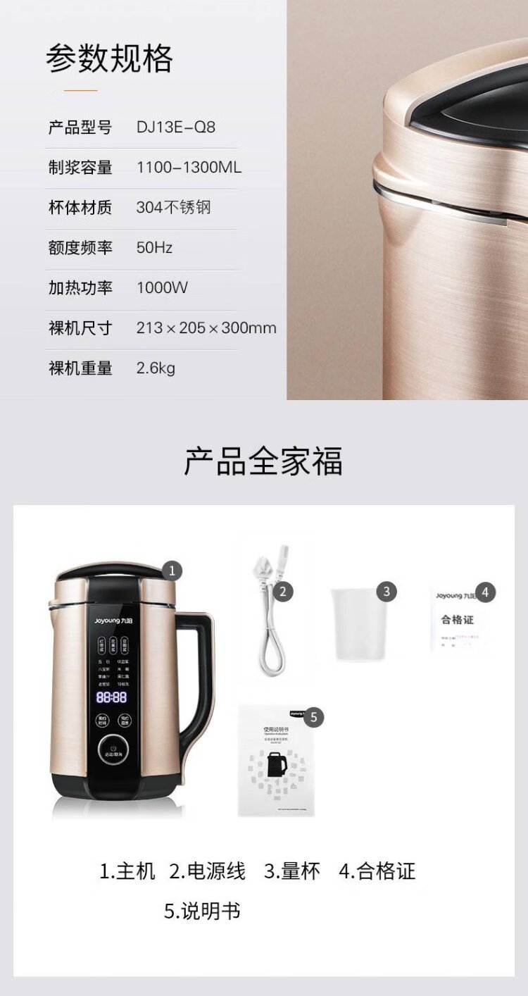 九阳(Joyoung)豆浆机1.3L破壁免滤2-5人食 家用多功能可预约榨汁机料理机破壁机DJ13E-Q8