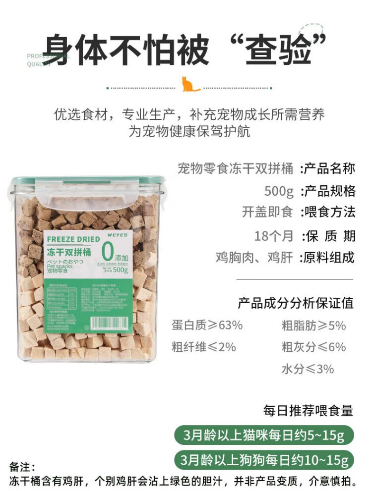 WEYES freeze-dried chicken liver granules 500g barreled pet cat and dog snacks freeze-dried chicken breast hair gills nutrition
