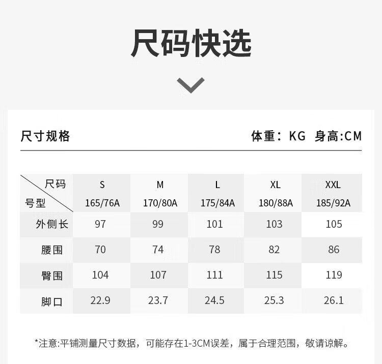 Outseam (cm) 99 cm 101.5 cm 104 cm 106.5 cm 109 cm