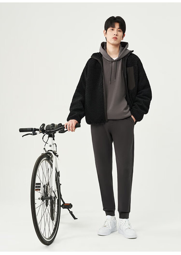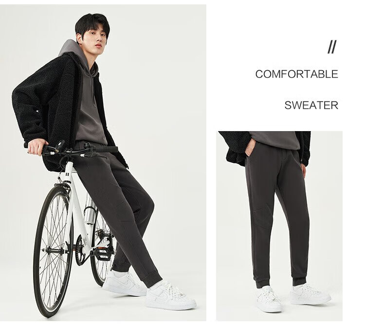 Made in Tokyo, heated and velvet sweatpants, men's casual pants, men's long pants, loose sports pants, men's autumn and winter sweatpants, black L