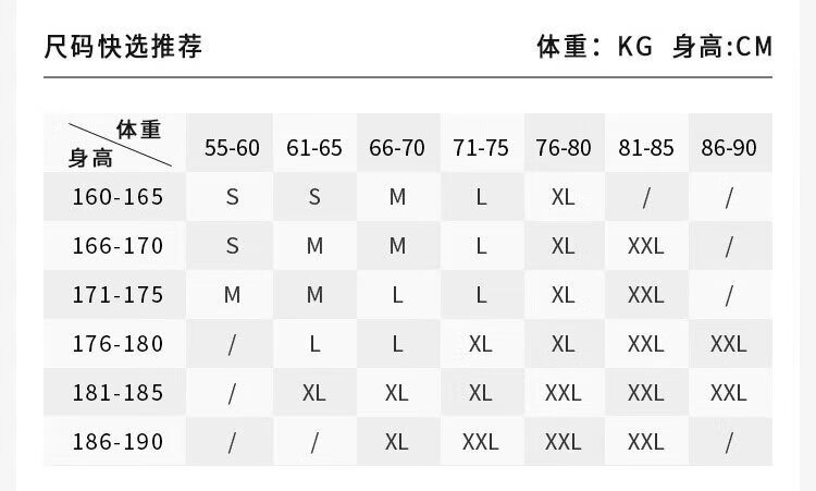 China (cm) 160-165/84-86 165-170 / 88-90 167-172 / 92-96 168-173 / 98-102 170-176 / 106-110