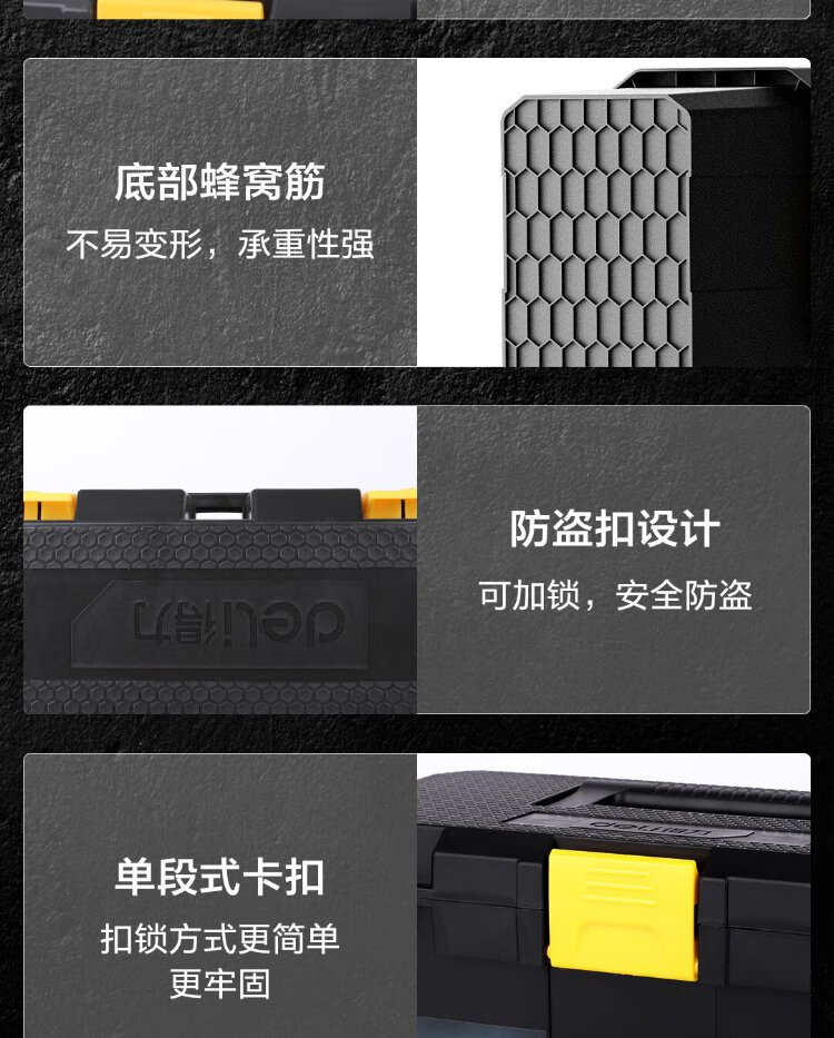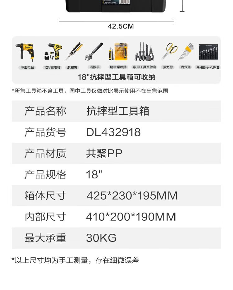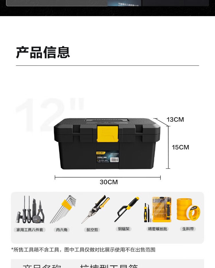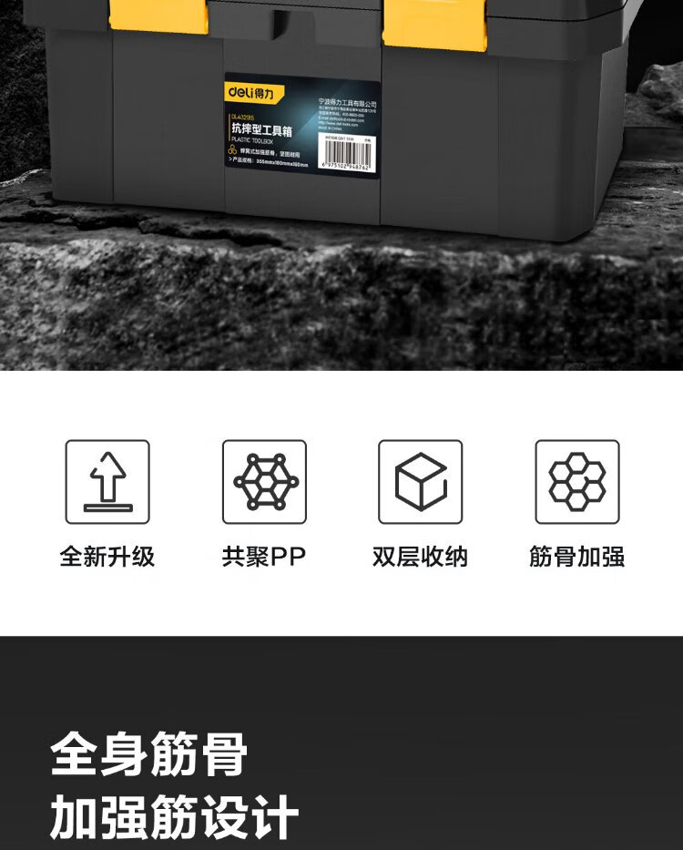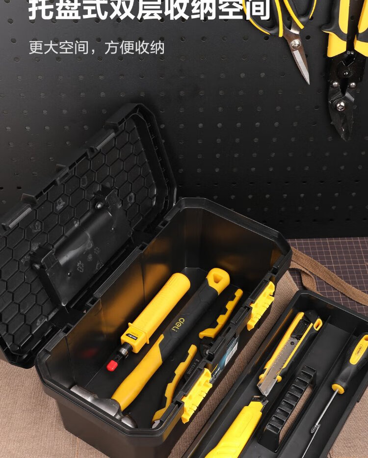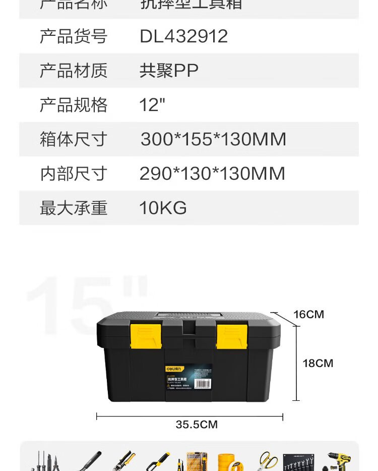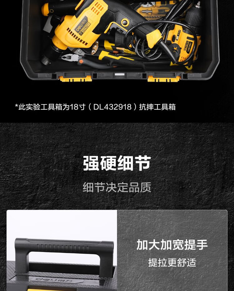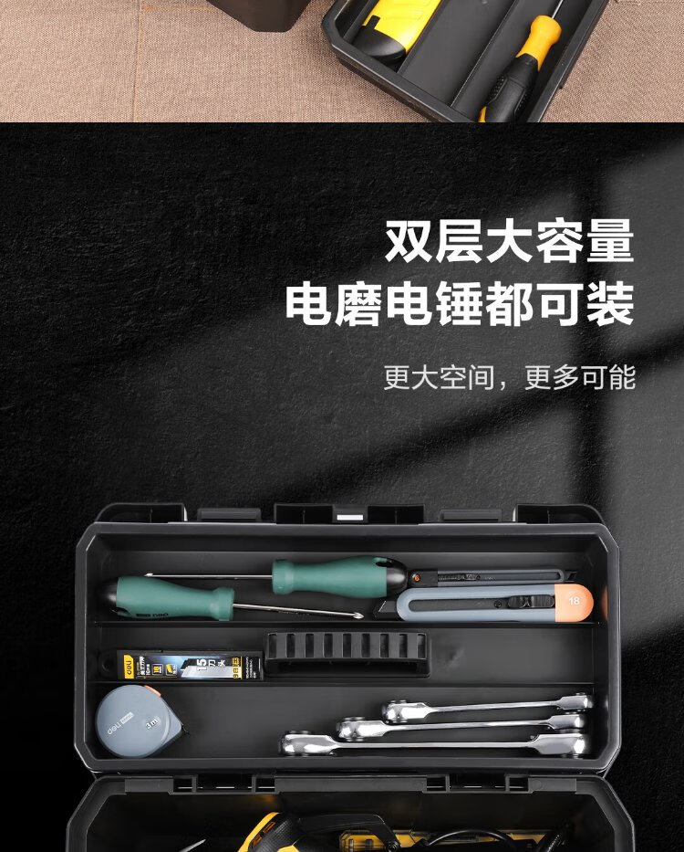 Deli anti-fall toolbox plastic storage box multifunctional household hardware storage box 15-inch electric hammer and electric grinder can be installed