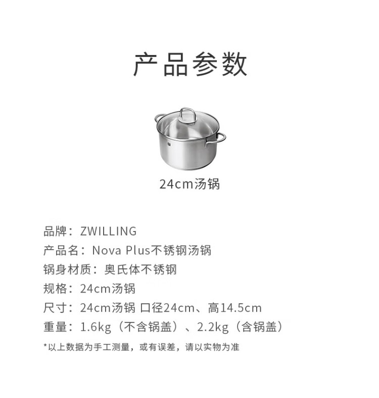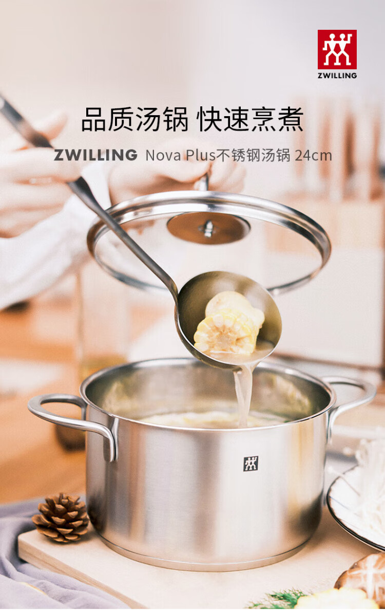 ZWILLING soup pot stainless steel gas stove induction cooker universal steamer binaural stew pot Nova Plus 24cm soup pot