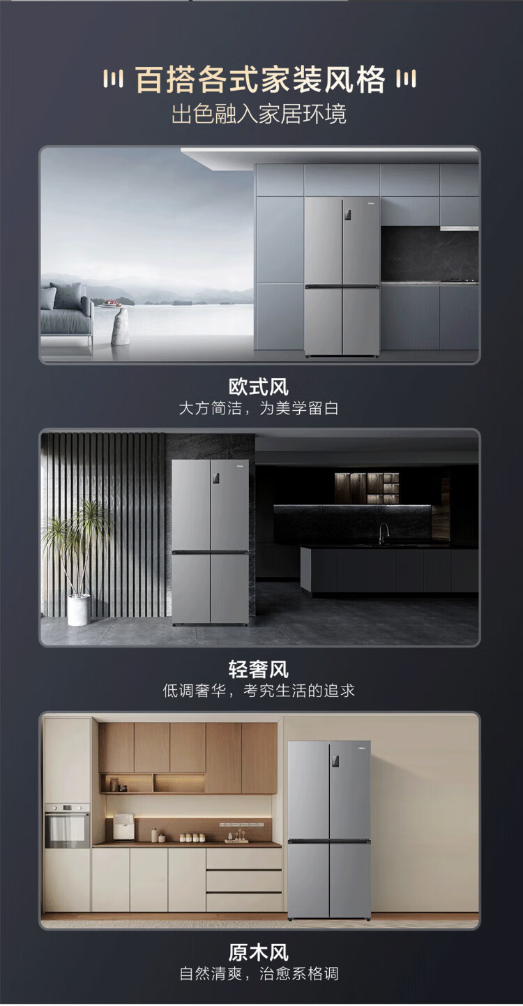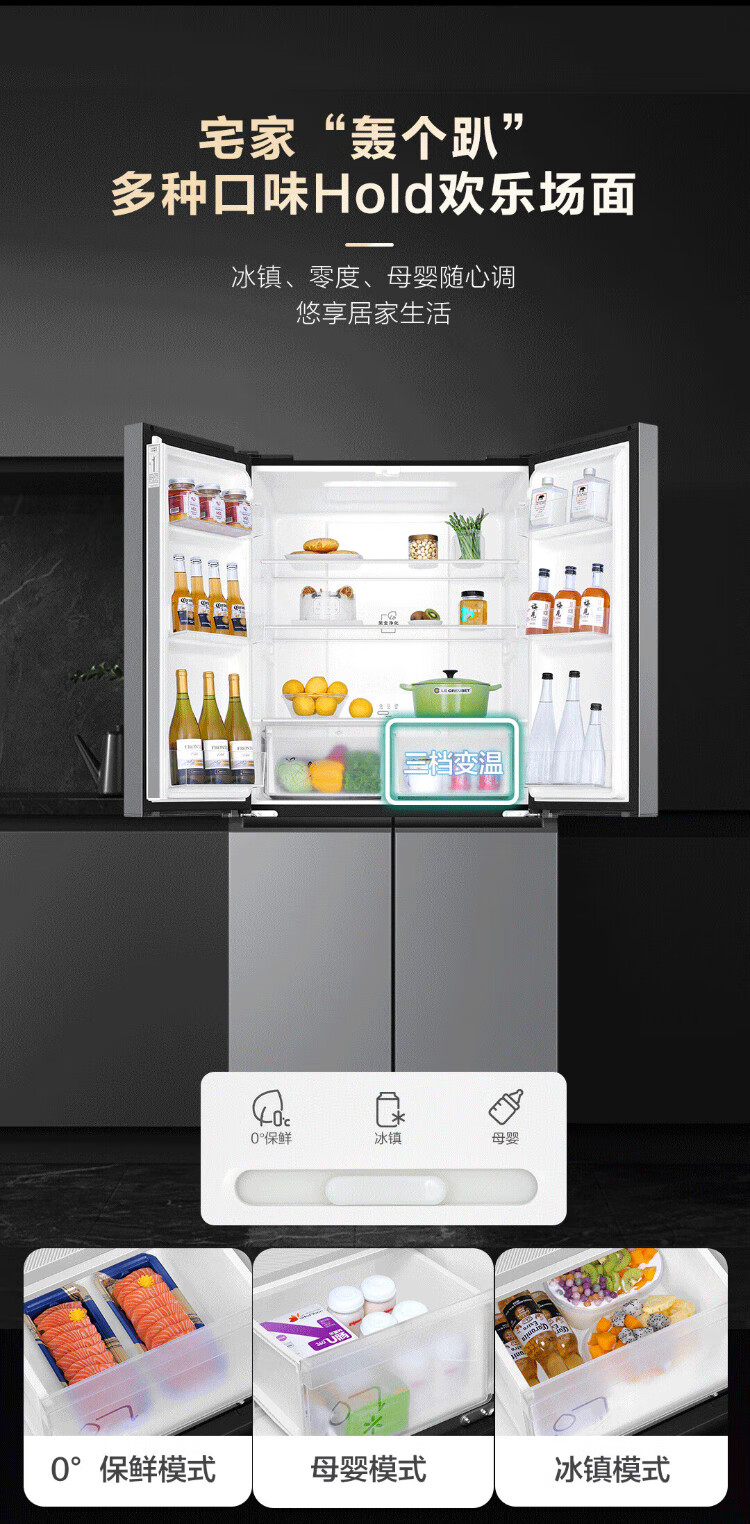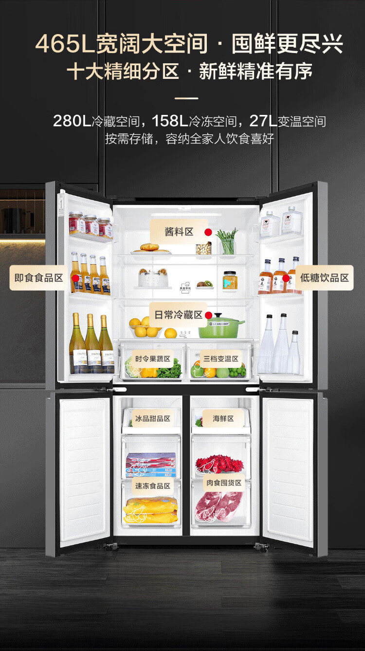 Haier Family Banquet 465 liter cross-fold four-door refrigerator household air-cooled frost-free first-class energy efficiency frequency conversion ultra-thin BCD-465WGHTDE9S9 home appliances national subsidy 20%