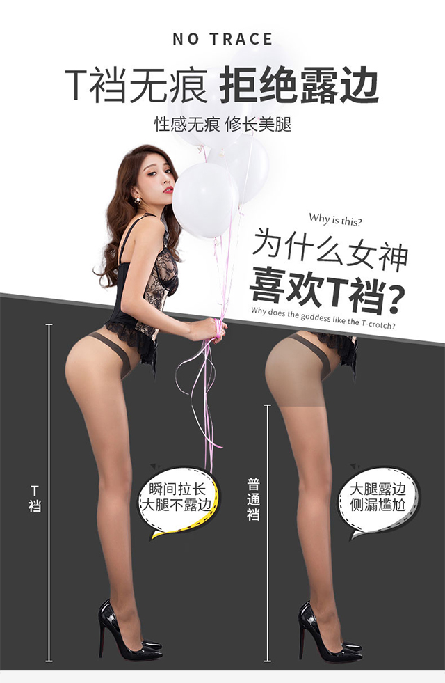 Langsha stockings women's T-crotch seamless ultra-thin sexy black stockings not easy to snag beautiful legs slimming bottoming pantyhose