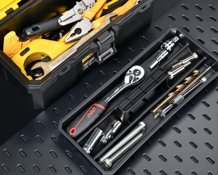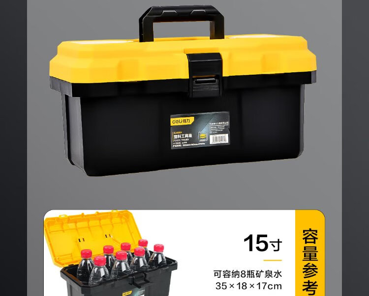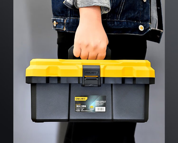 Deli reinforced tool box empty plastic storage box multi-functional repair household hardware storage box 15 inches