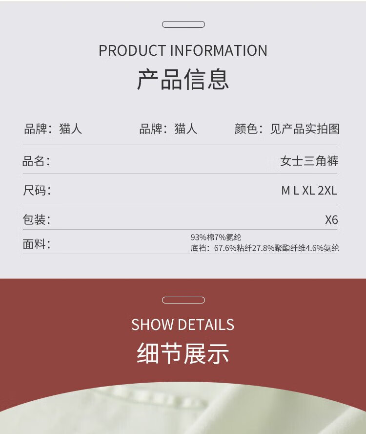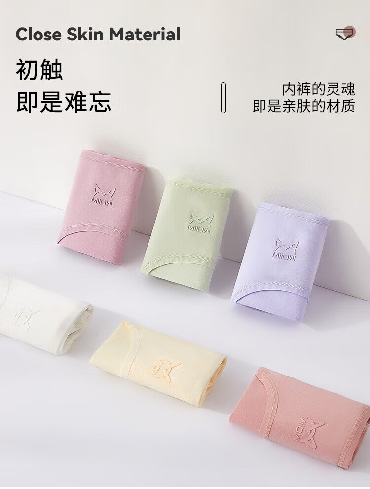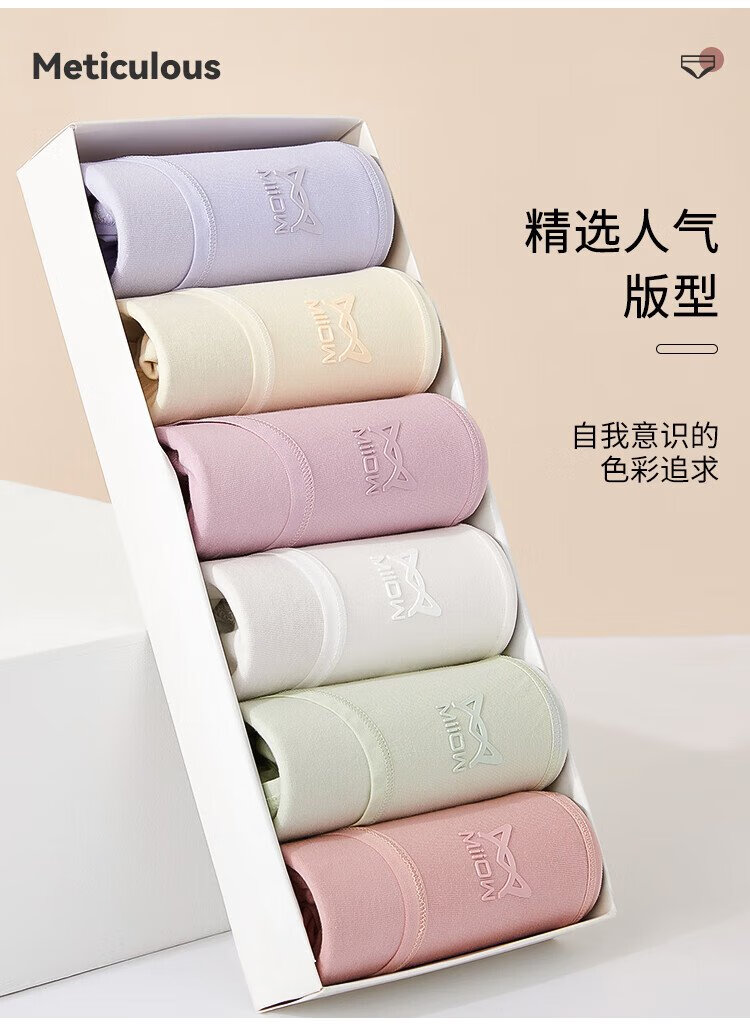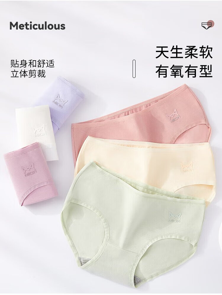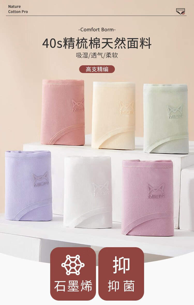 Catman 6-pack women's underwear women's 10A graphene antibacterial crotch mid-waist seamless girls' raw cotton briefs mixed color L