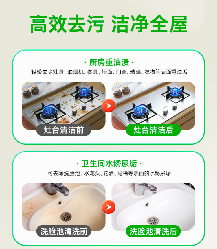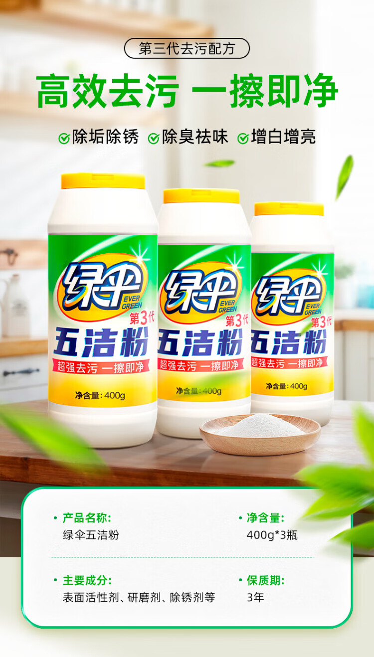 Green Umbrella Five Cleansing Powder Oil Cleaner Stainless Steel Sink Rust Remover Descaling Destain Polish 400g 3 Bottles