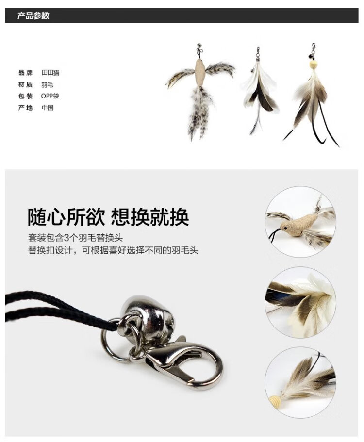 Tian Tian Cat Suction Cup Cat Stick Feather Replacement Head Cat Supplies Cat Toy 3 Replacement Heads