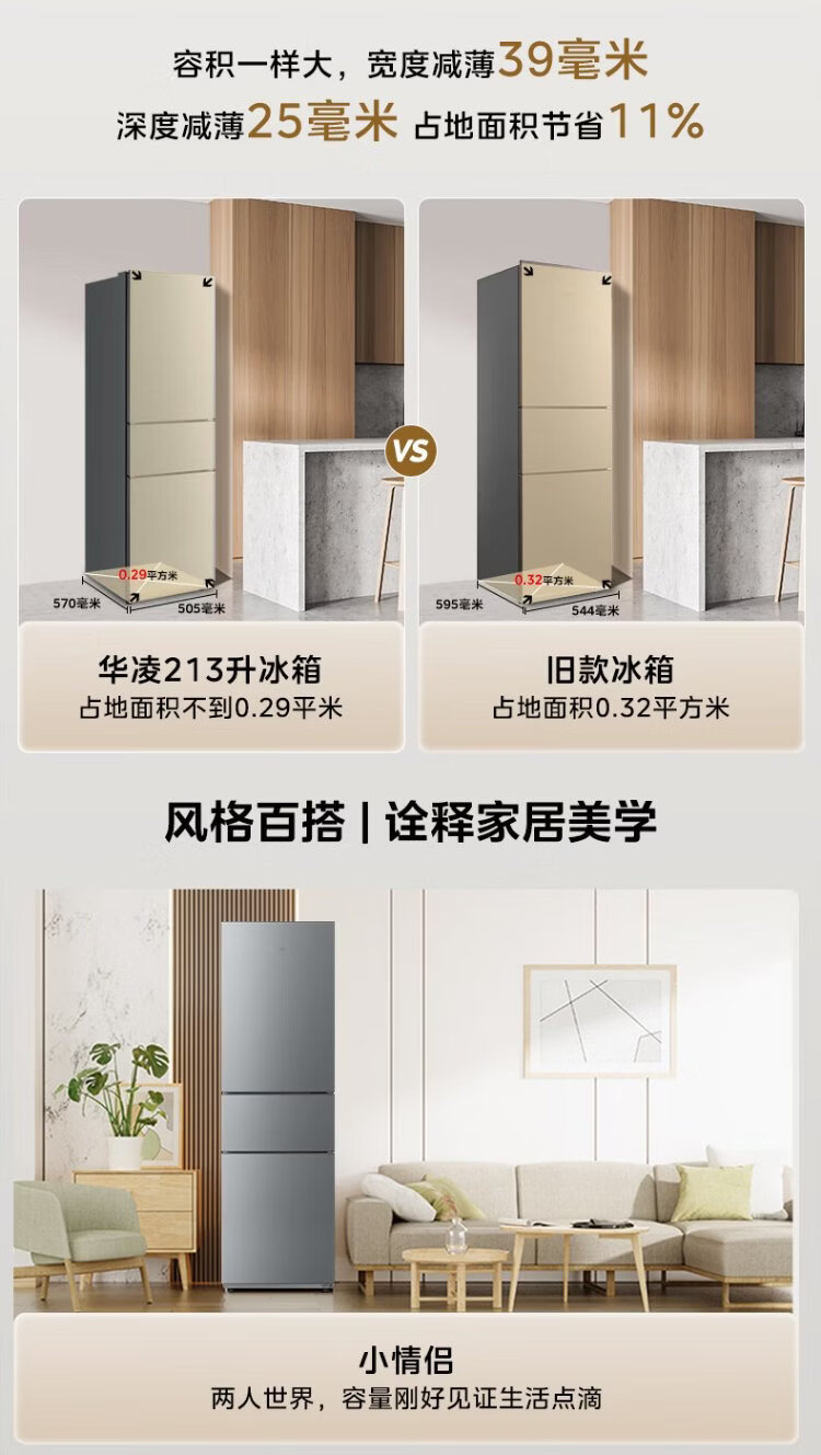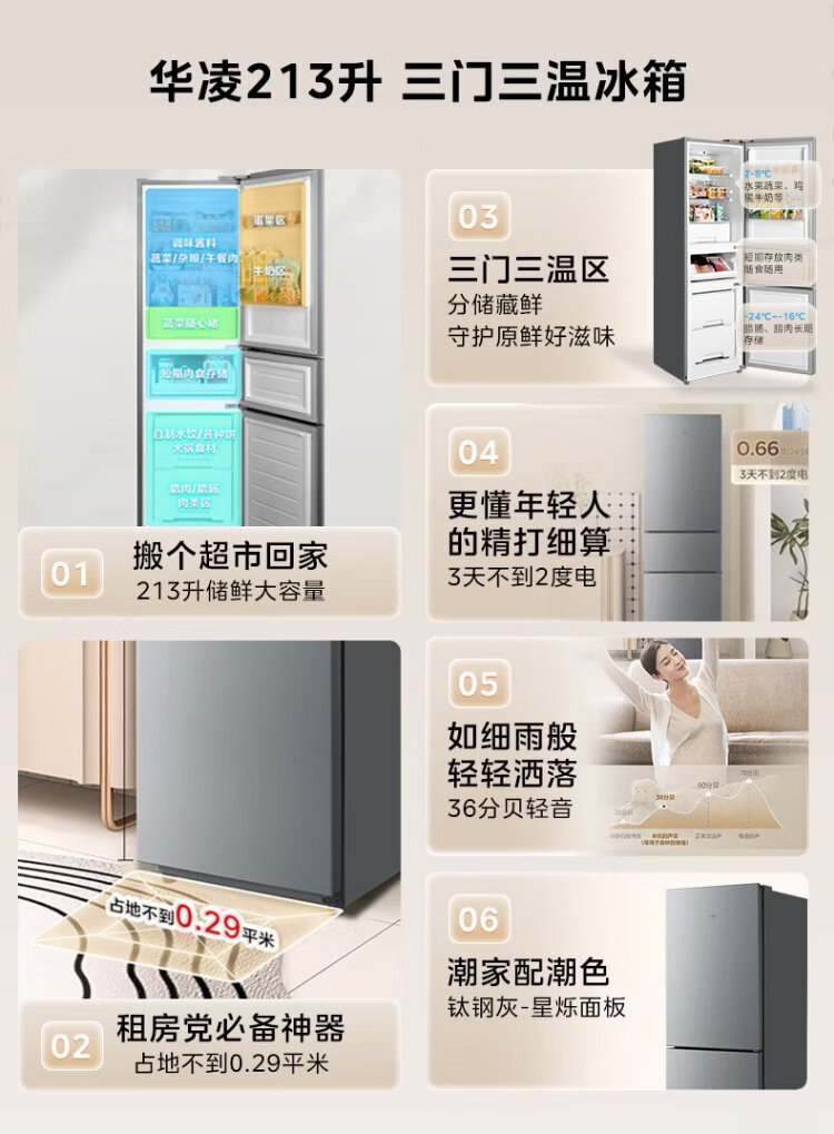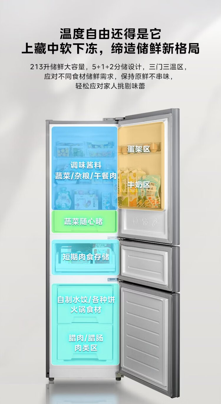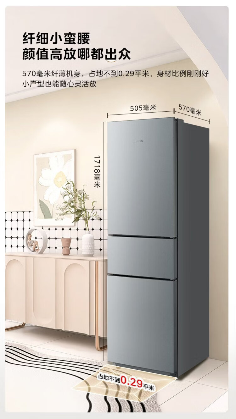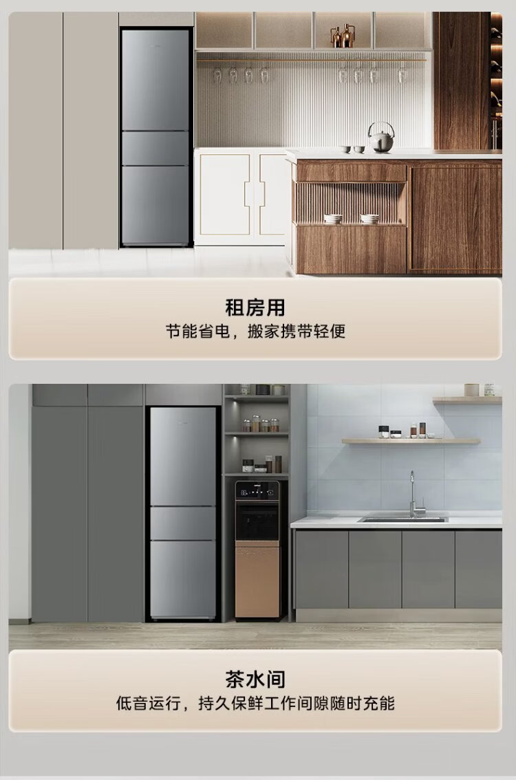 Hualingmei's refrigerator produces 223 three-door refrigerator, energy-saving bass, three-door, three-temperature, three-door small home rental, preferred refrigerated small refrigerator HR-223T