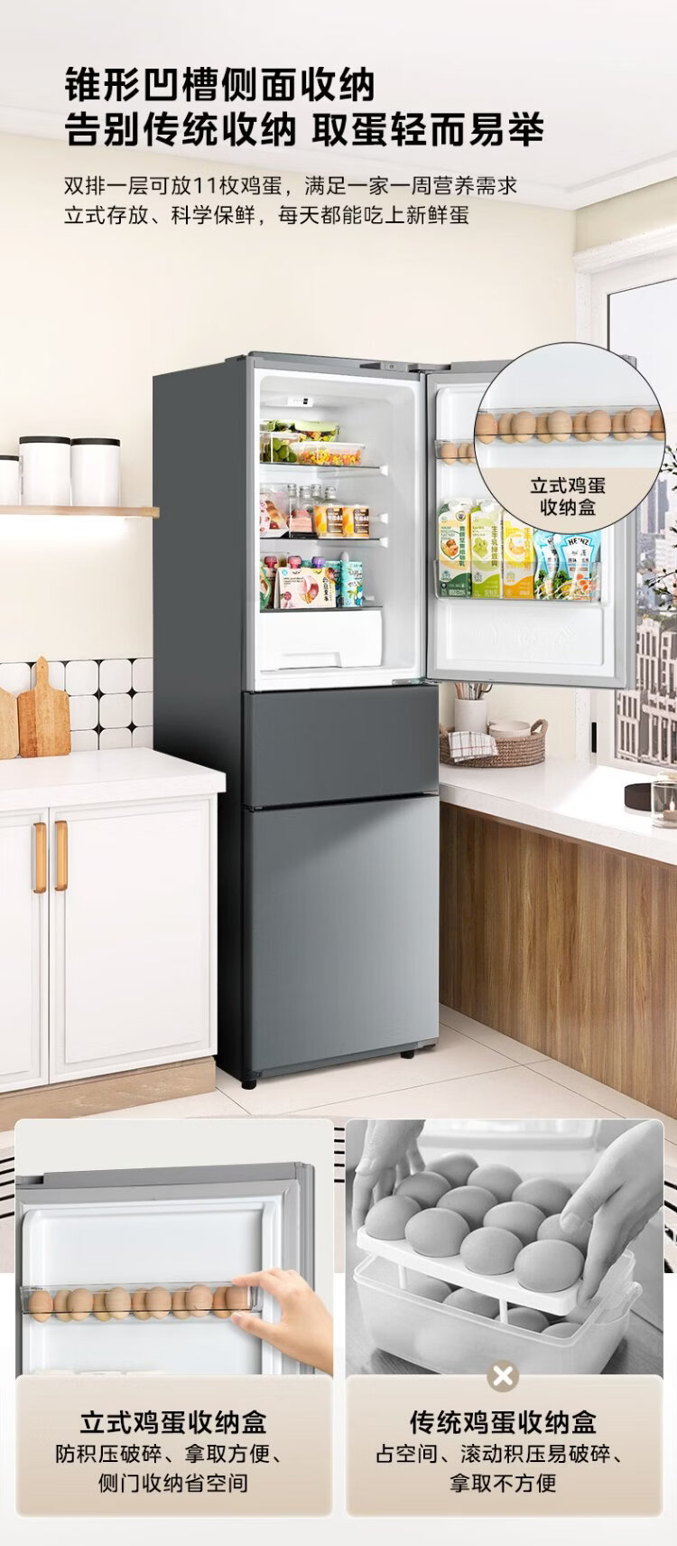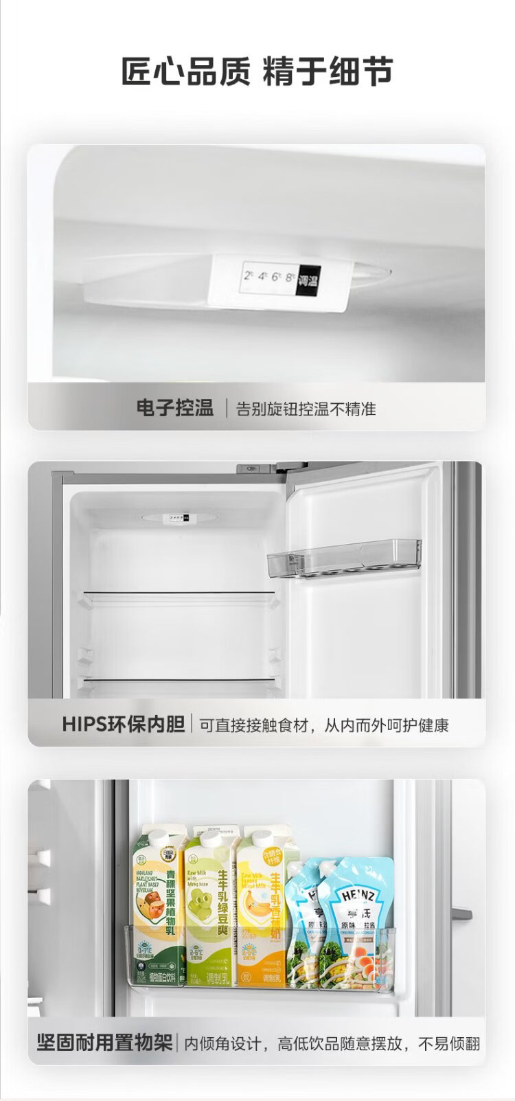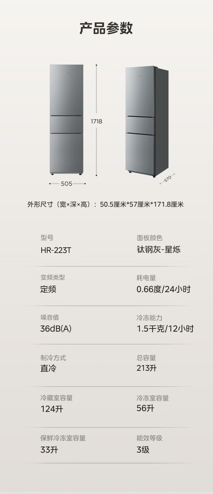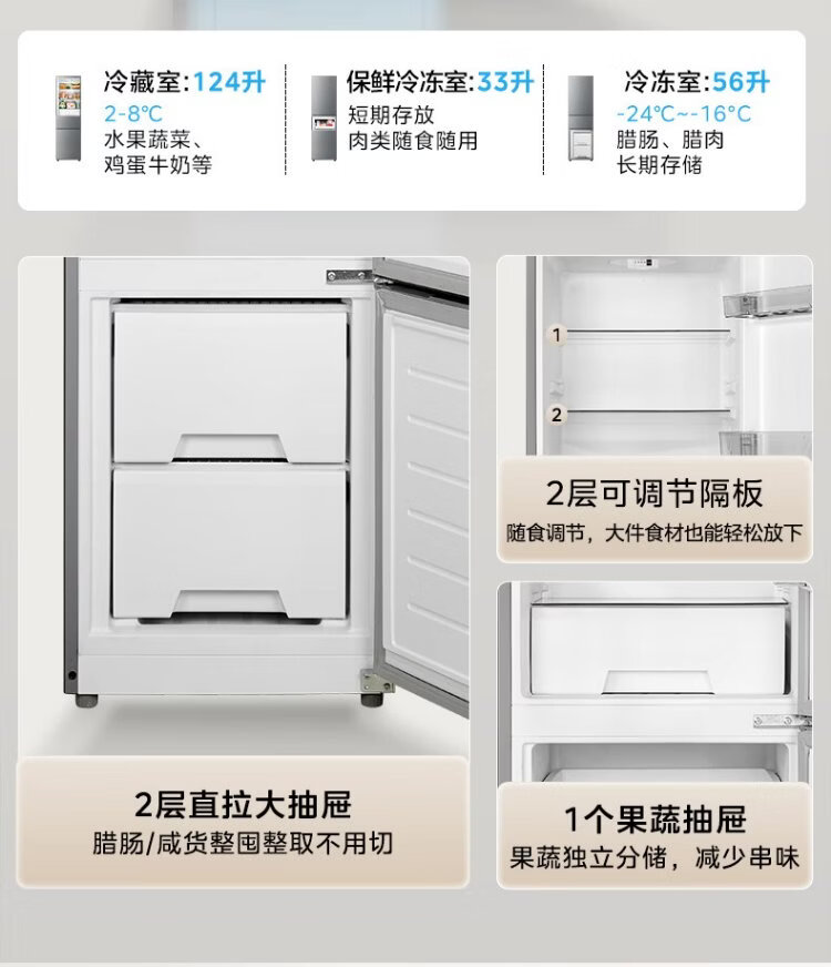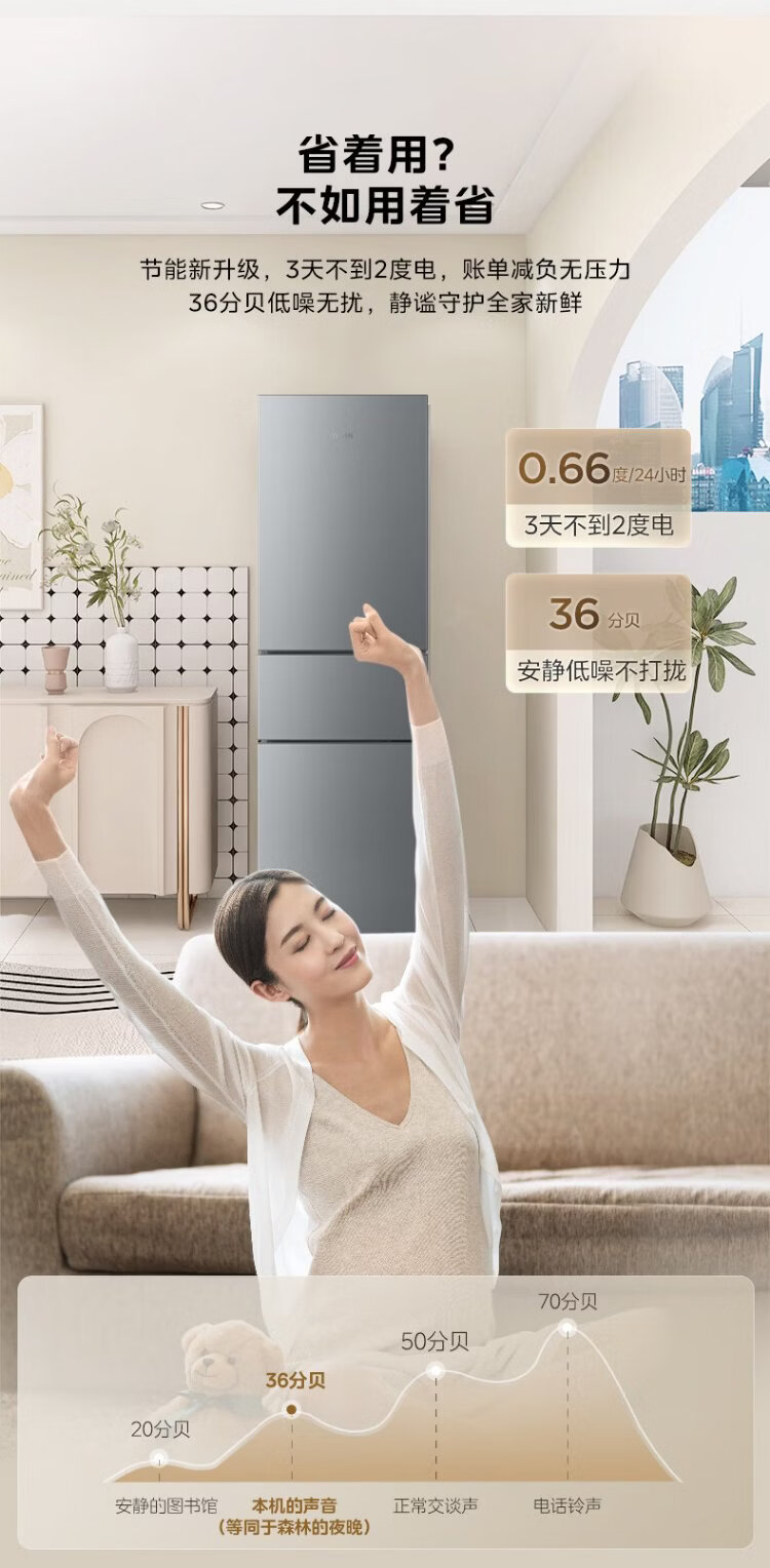 Hualingmei's refrigerator produces 223 three-door refrigerator, energy-saving bass, three-door, three-temperature, three-door small home rental, preferred refrigerated small refrigerator HR-223T