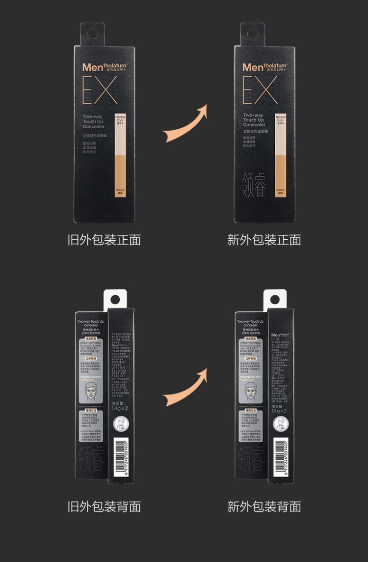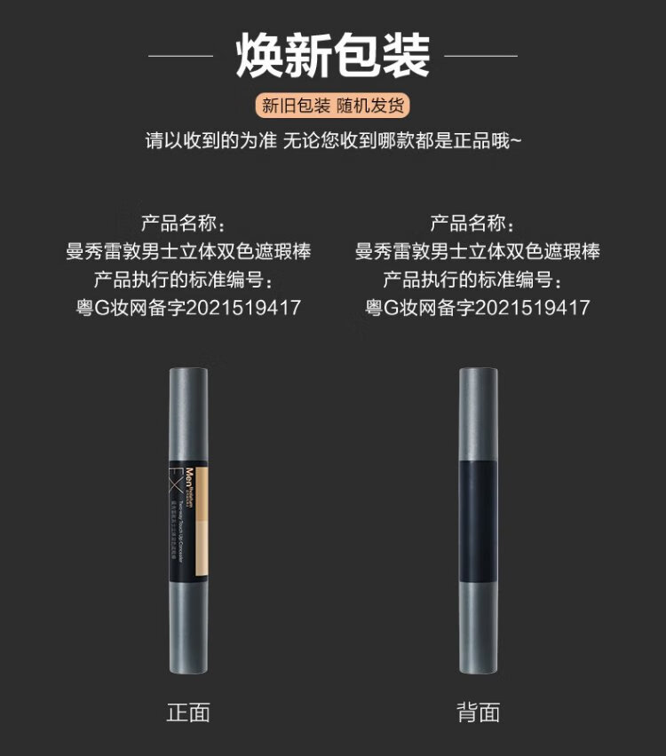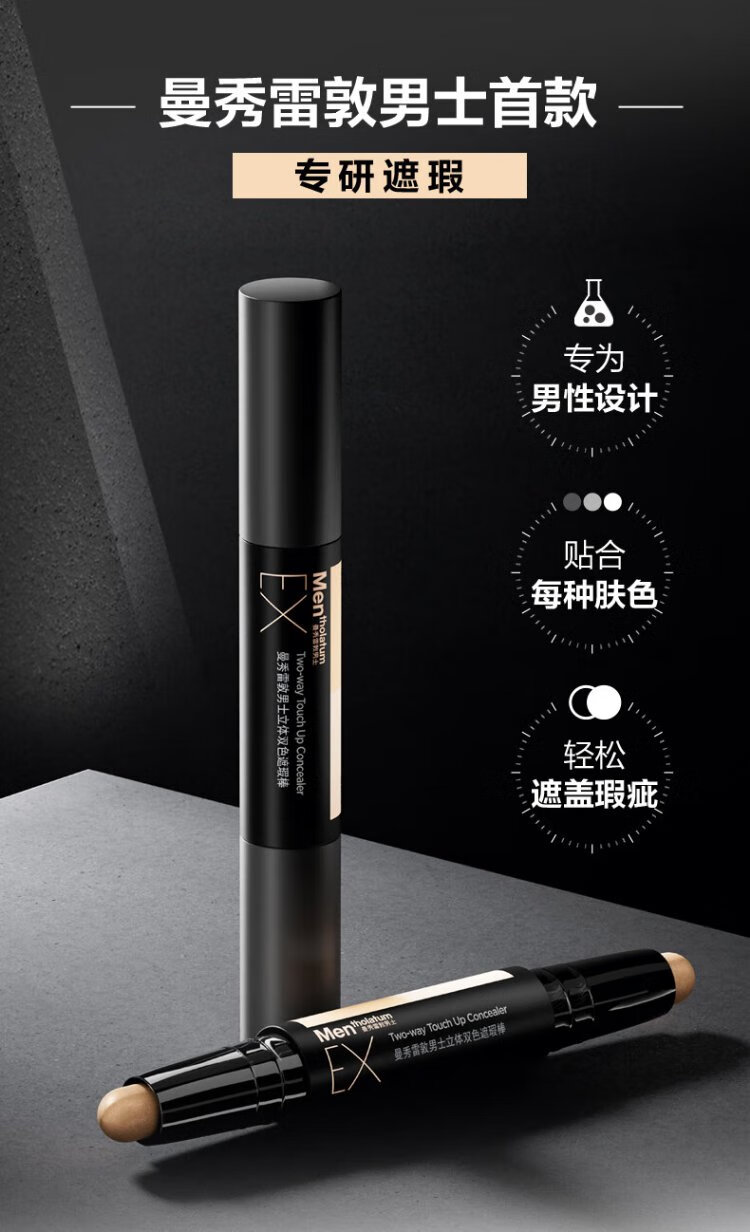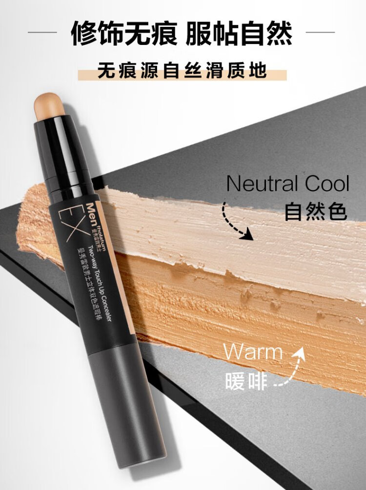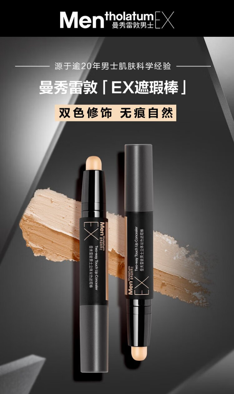 Mentholatum men's three-dimensional two-color concealer stick 2.8g brightening concealer two-in-one natural contouring waterproof and sweat-proof cosmetics for men