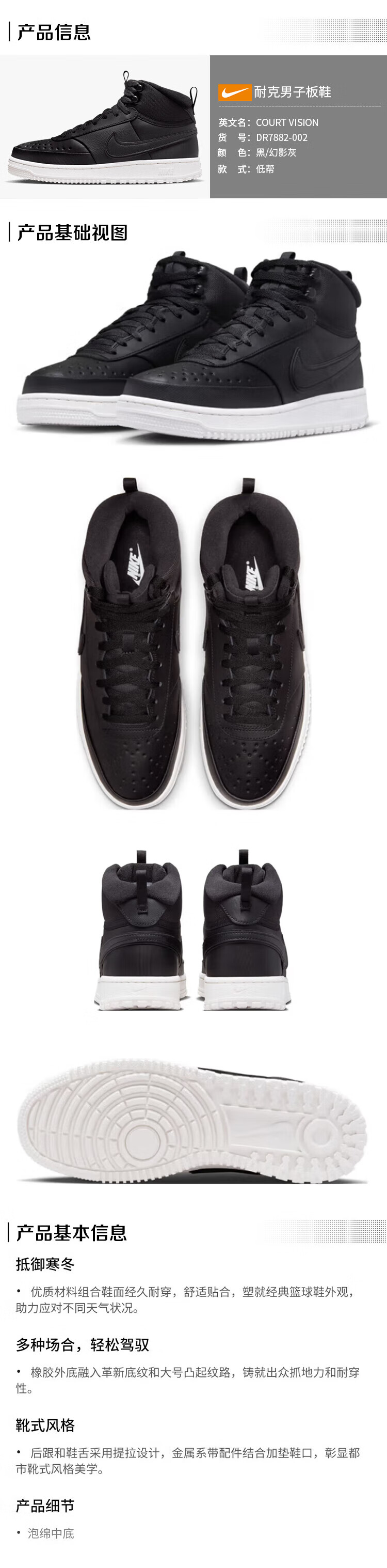 Nike NIKE men's sneakers classic COURT VISION sneakers DR7882-002 black 42