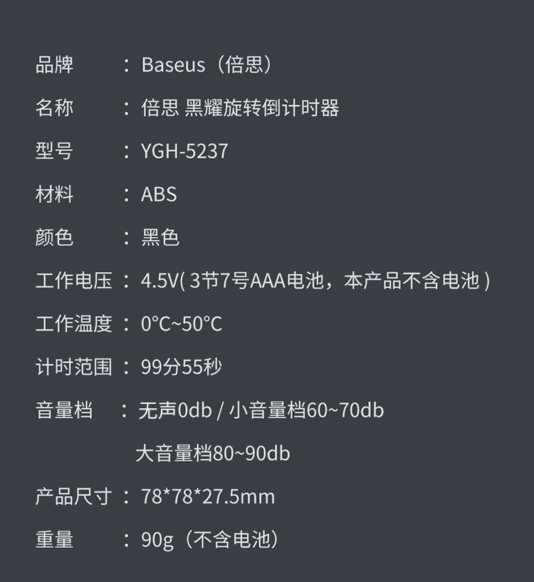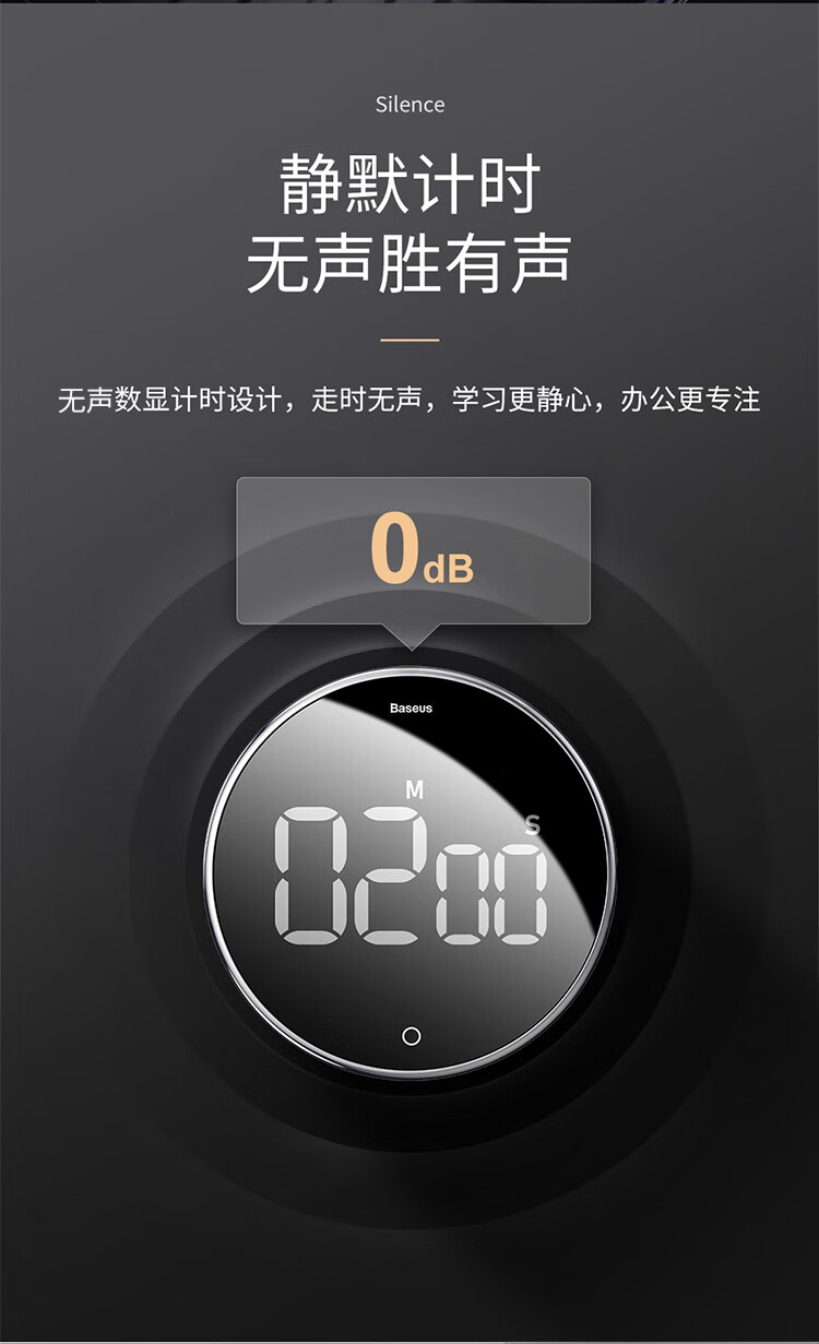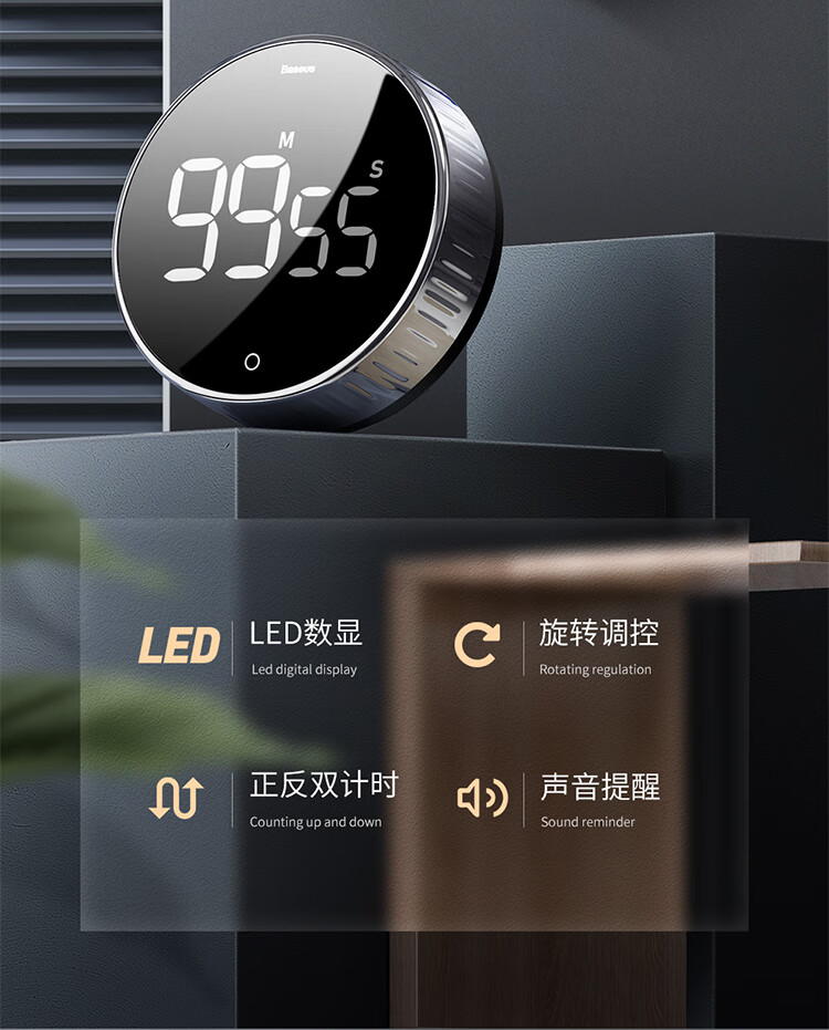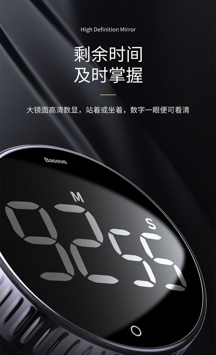 Baseus electronic timer kitchen baking timer student self-study exam children's literature time management self-discipline learning multi-functional timing alarm clock LED large screen visual digital display