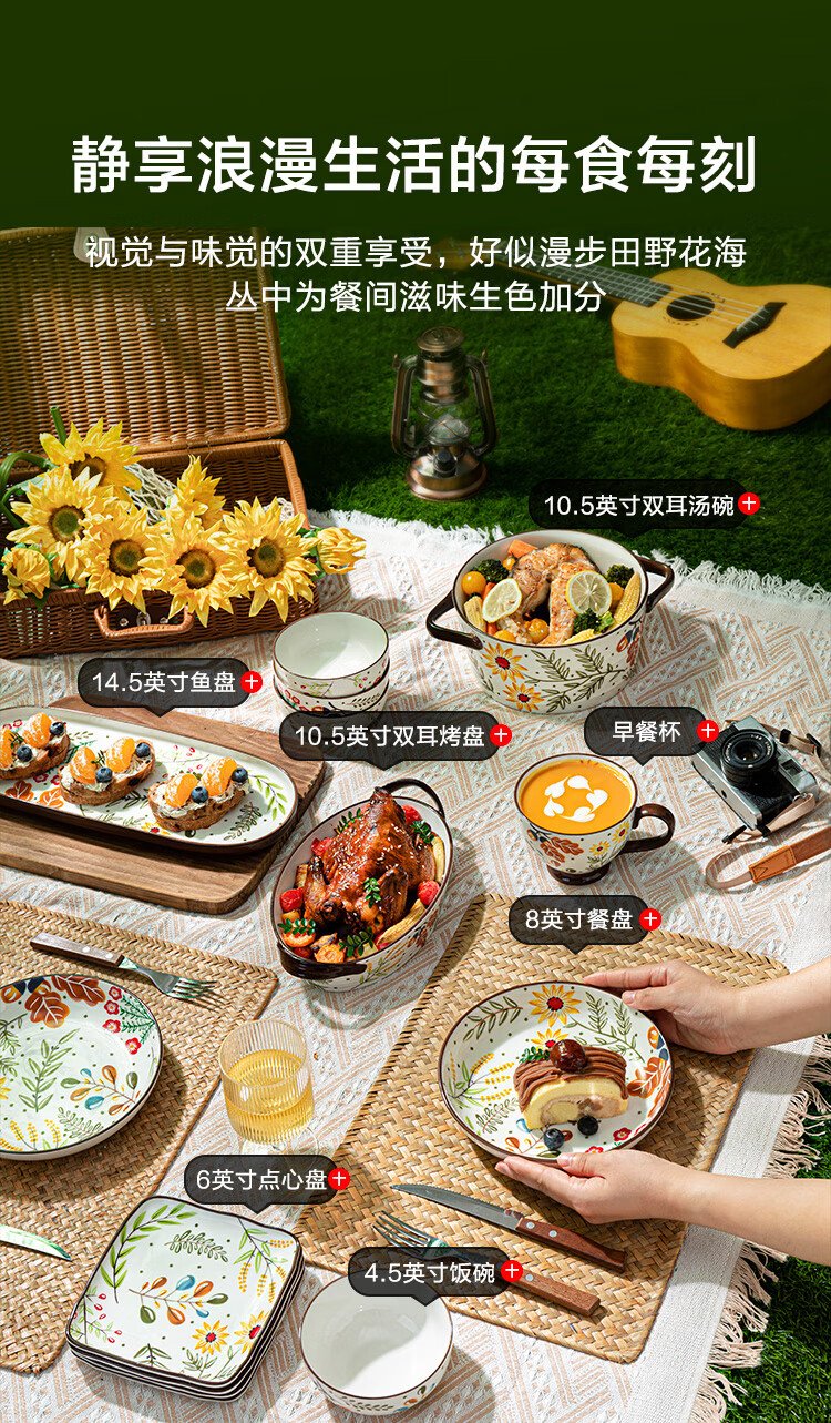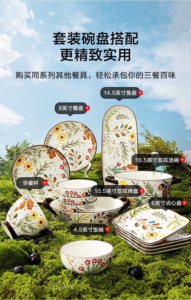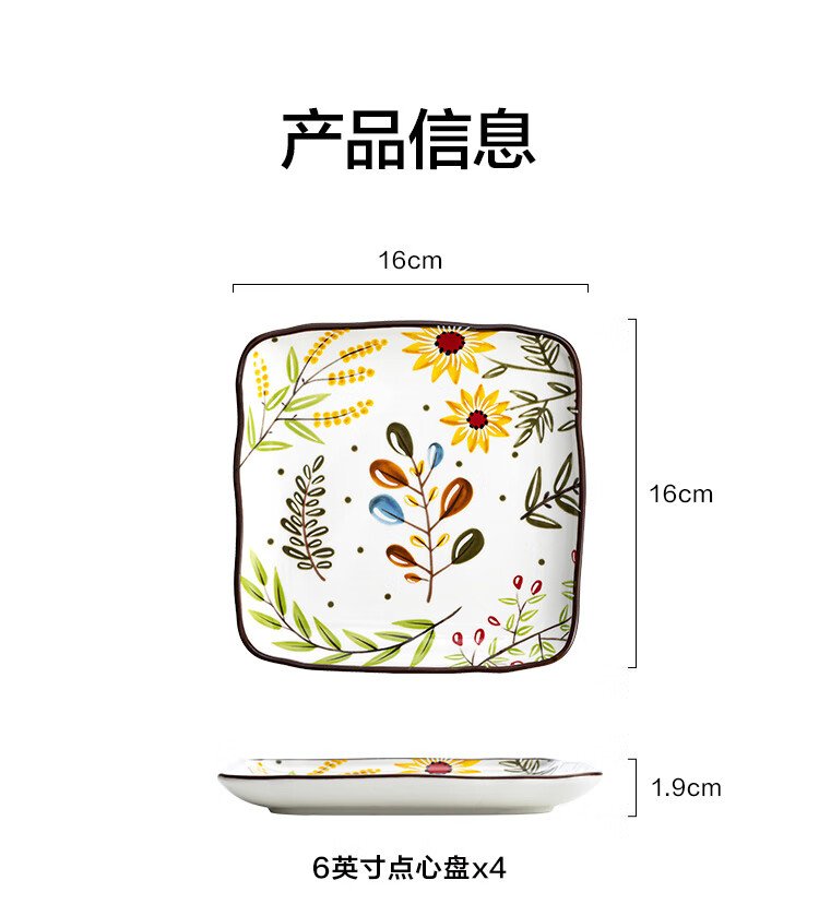 Made in Tokyo, American-style plates, tableware sets, plates, plates, housewarming ceramics, flower series dessert plates, 6 inches*4