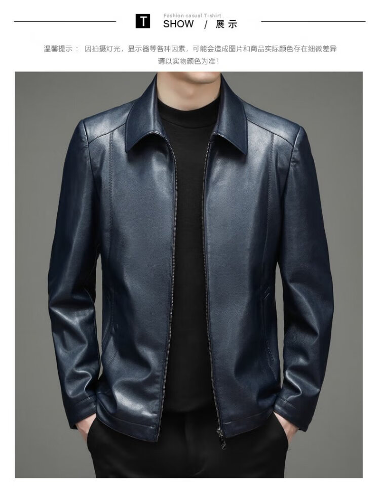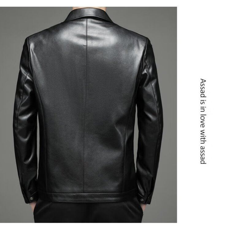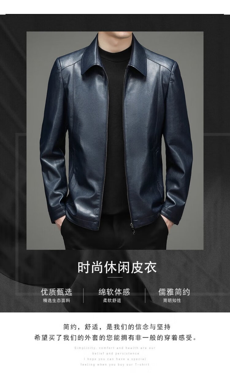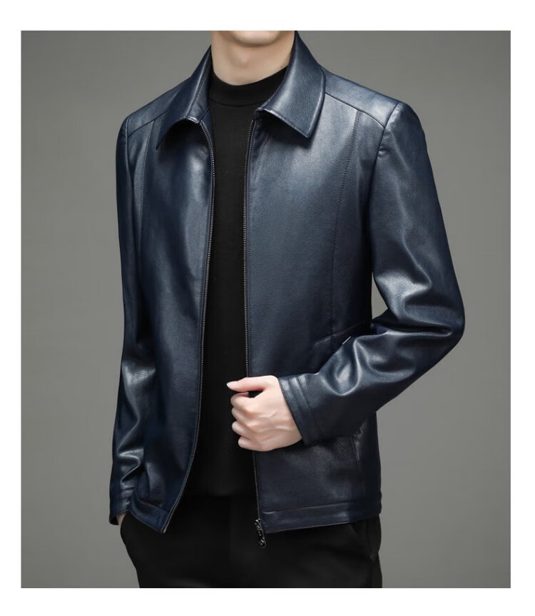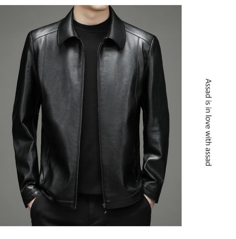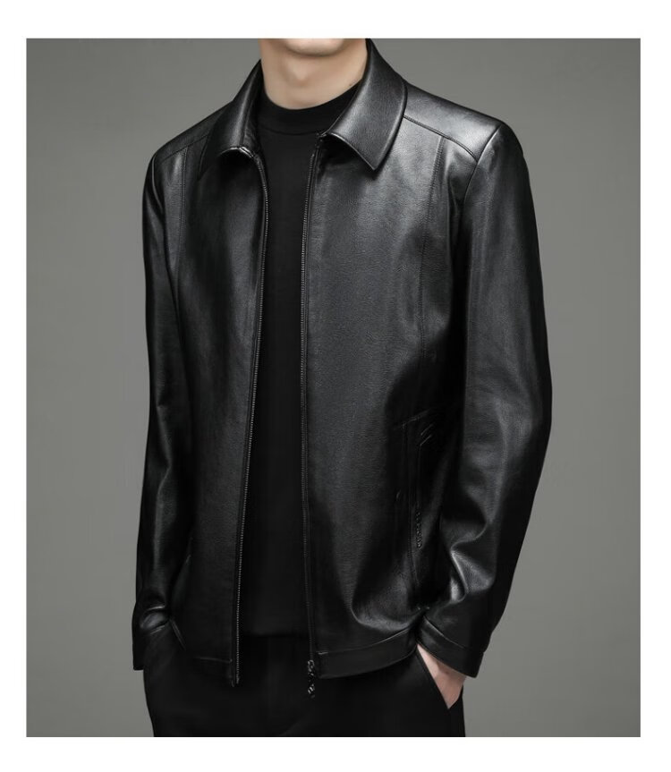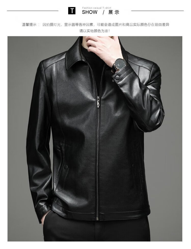 Yalu leather jacket men's spring and autumn business casual lapel solid color jacket young and middle-aged men's dad wear comfortable jacket top